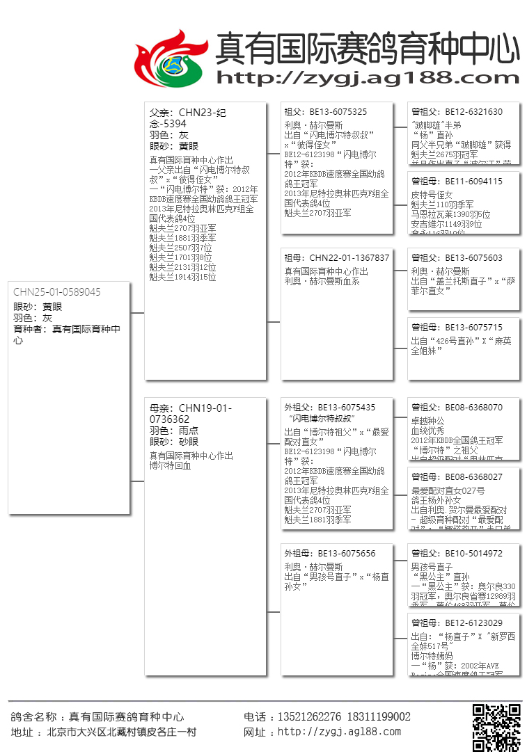 【在这三座金矿还未被世人发现之前,真有国际就第一时间把高品质的鸽子带到了国内,取得了空前的发挥。近几年大家才逐渐认识这几位大师鸽子的魅力。请记住!当任何商业鸽舍进入炒作后期的时候,他的鸽子质量与价值都会急剧下降,即便是詹森兄弟也难免于此。所以引进这家鸽舍最巅峰时期的鸽子,得以延续,才是真有国际成功的致胜法宝。】