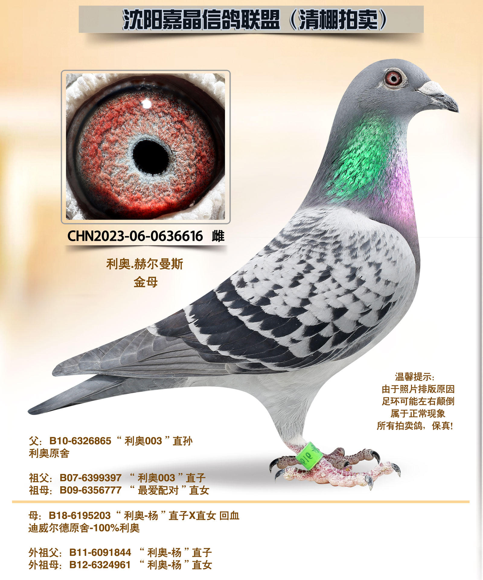 本联盟无奈,清舍拍卖,鸽舍因距离沈飞机场跑道太近,鸽群经常飞入机场试飞跑道内,飞机试飞存在安全隐患,机场工作人员多次找到本人,要求搬离拆除鸽舍,切全面停止赛鸽飞行,起初也没当回事,就在去年12月初,派出所民警找到本人,强制确切要求,必须拆除或搬离鸽舍。所给时间且非常紧迫,无奈之下将多年来饲养的种赛鸽(包括奖鸽祖辈、父母、奖鸽极其平辈)全部清棚一羽不留,本舍比赛20年,作出奖赛鸽百余羽,所留下的都是最顶尖,最实战的鸽系,希望我个人的鸽子能成为纽带,能为广大鸽友作出更优秀的赛绩,感谢鸽友多年来对嘉晶信鸽的信任与支持!!!