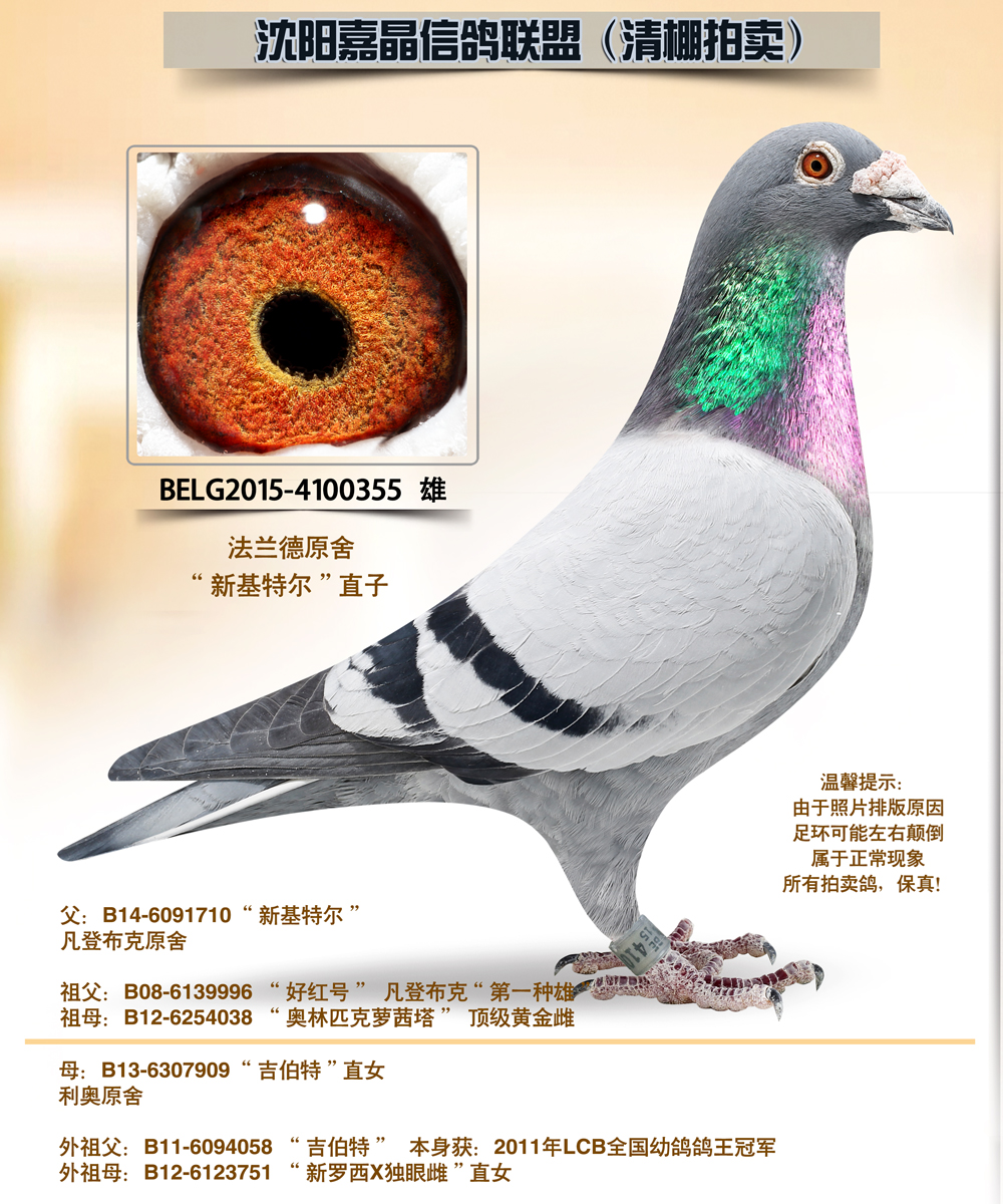 本联盟无奈,清舍拍卖,鸽舍因距离沈飞机场跑道太近,鸽群经常飞入机场试飞跑道内,飞机试飞存在安全隐患,机场工作人员多次找到本人,要求搬离拆除鸽舍,切全面停止赛鸽飞行,起初也没当回事,就在去年12月初,派出所民警找到本人,强制确切要求,必须拆除或搬离鸽舍。所给时间且非常紧迫,无奈之下将多年来饲养的种赛鸽(包括奖鸽祖辈、父母、奖鸽极其平辈)全部清棚一羽不留,本舍比赛20年,作出奖赛鸽百余羽,所留下的都是最顶尖,最实战的鸽系,希望我个人的鸽子能成为纽带,能为广大鸽友作出更优秀的赛绩,感谢鸽友多年来对嘉晶信鸽的信任与支持!!!