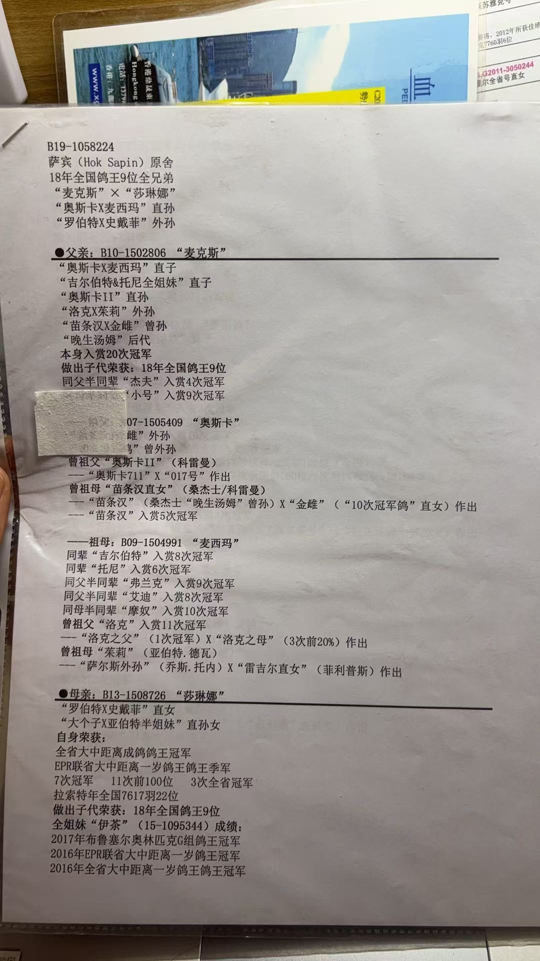 | 1653399 | 伊万号回血直孙、做出多羽奖鸽 | ¥200元 | 1次 |