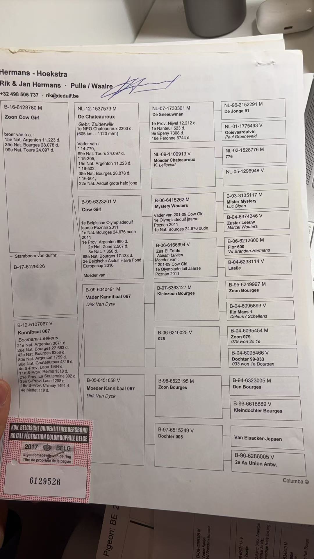 - 当前查看拍卖鸽:牛仔女孩直孙女、瑞克·赫尔曼原舍