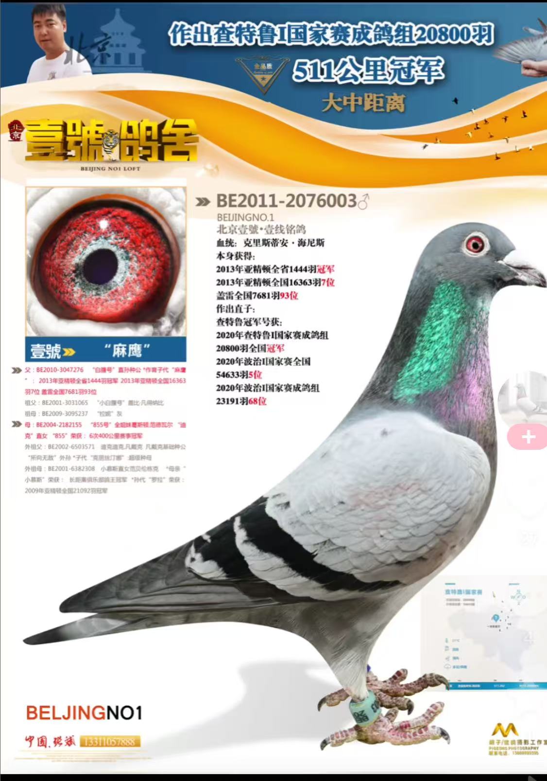此鸽平辈;20年查特鲁全国20800羽总冠军