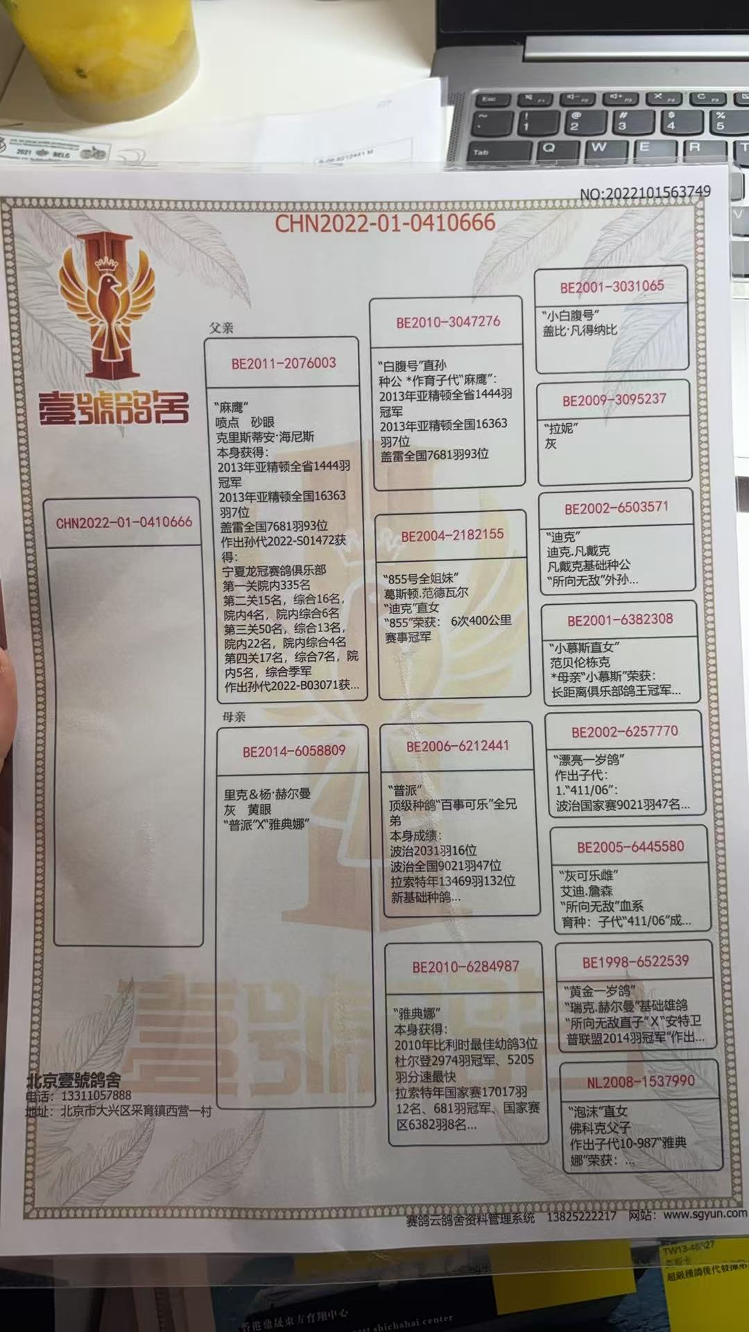 | 1653656 | 壹号鸽舍、新比利时骄傲外孙女 | ¥600元 | 3次 |