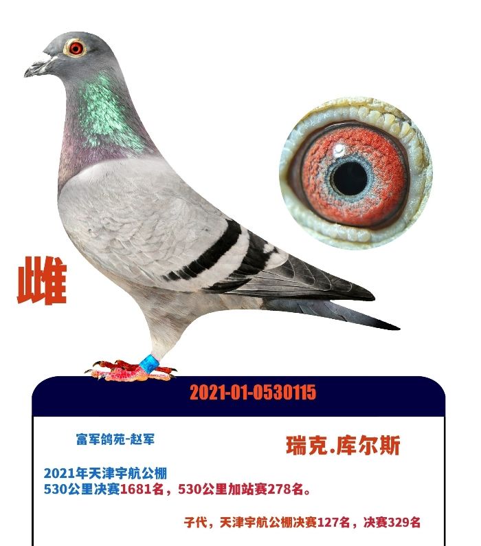 2021年天津宇航公棚加站赛获奖鸽,自身质量高级。子代公棚已发挥。血统,瑞克.库尔斯原舍作育。