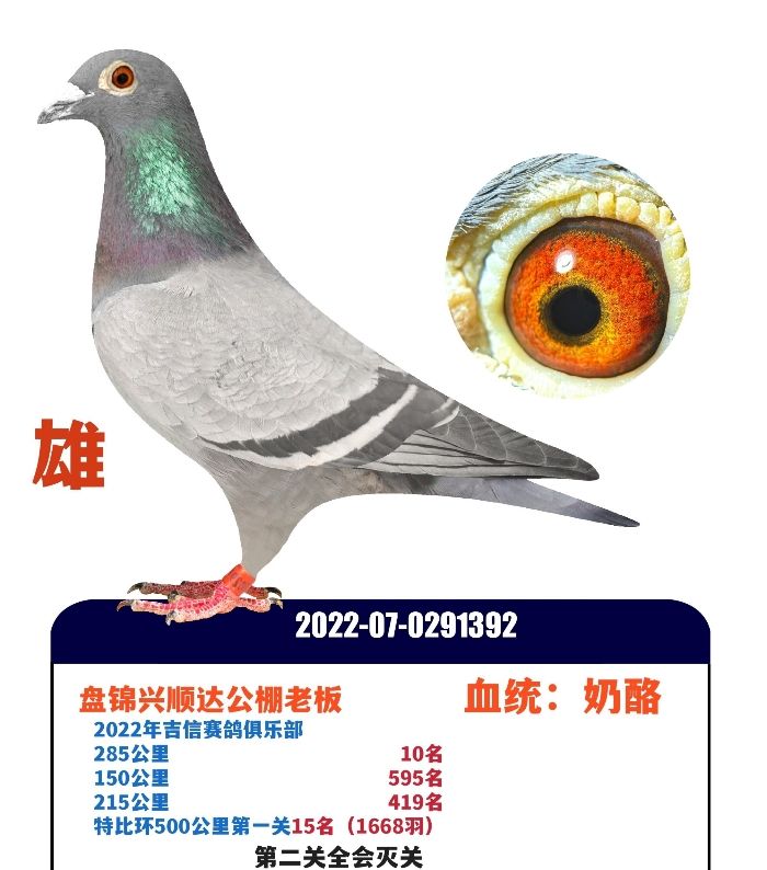 2022年盘锦兴顺达公棚老板,特比环15名,雄,血统,奶酪。
