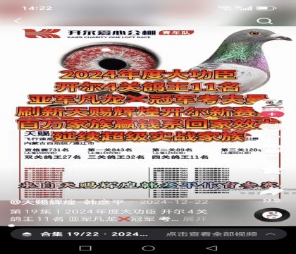 | 1653661 | 开尔公棚奖鸽 | ¥500元 | 1次 |