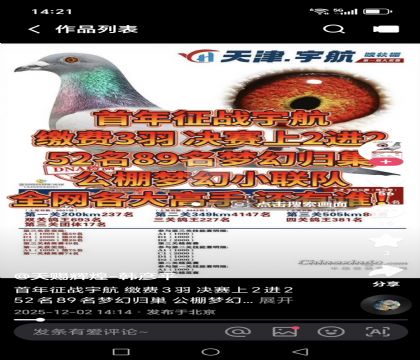 | 1653741 | 中华鸽业飞戈 | ¥0元 | 0次 |