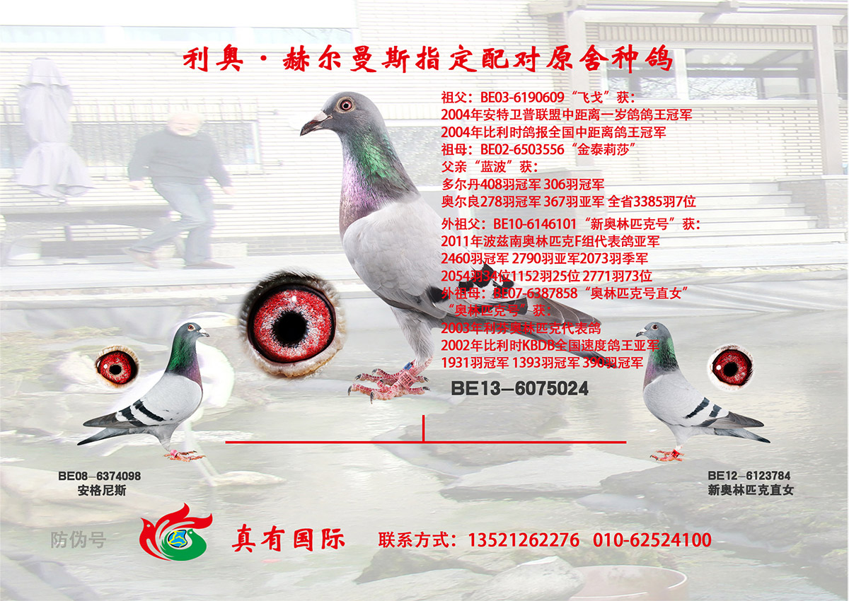 【在这三座金矿还未被世人发现之前,真有国际就第一时间把高品质的鸽子带到了国内,取得了空前的发挥。近几年大家才逐渐认识这几位大师鸽子的魅力。请记住!当任何商业鸽舍进入炒作后期的时候,他的鸽子质量与价值都会急剧下降,即便是詹森兄弟也难免于此。所以引进这家鸽舍最巅峰时期的鸽子,得以延续,才是真有国际成功的致胜法宝。】