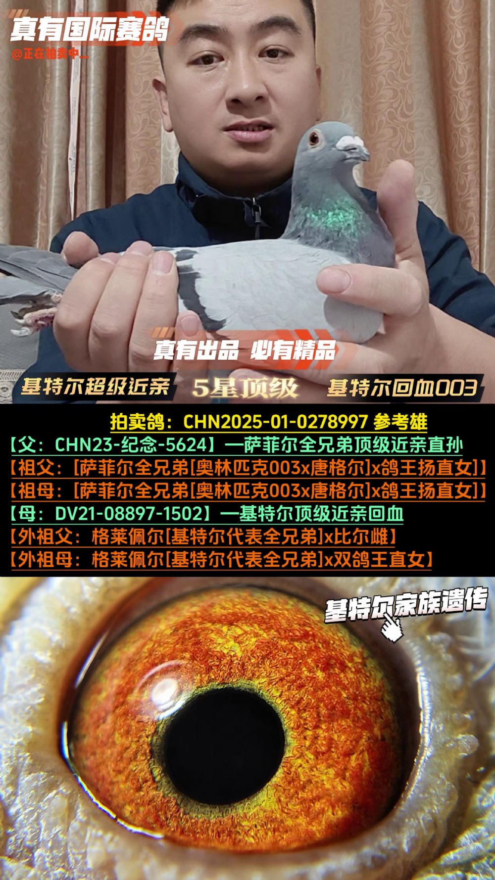 由于所有拍卖鸽均没有作育记录,因此无法100%保证雌雄的正确性,拍卖视频中的雌雄仅供参考,最终以实物为主。如有雌雄特殊要求请及时联系真有国际确认,所有拍卖鸽均享受7天免费换鸽服务(运费自理),由于拍卖形式的鸽子具备商品的唯一性,因此不支持退款服务,感谢大家的理解与支持!谢谢!
