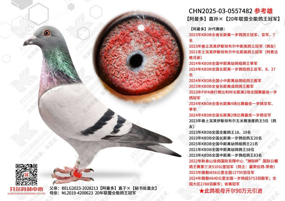 - 当前查看拍卖鸽:阿曼多直孙×20年联盟全能鸽王冠军