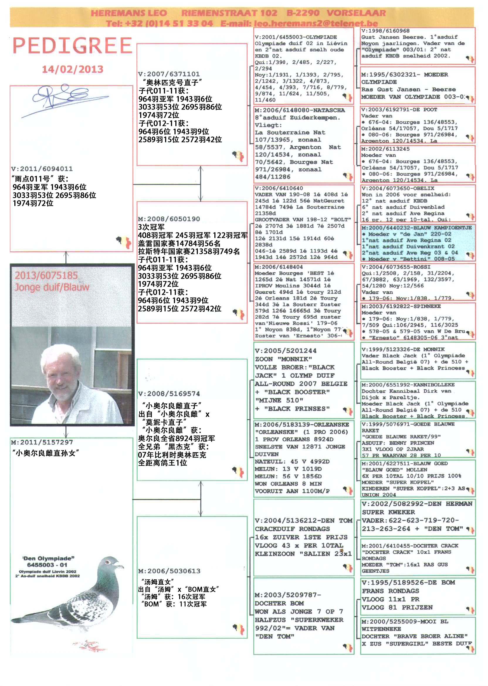 ●祖父:B07-6371101 世界铭鸽“利奥003”直子