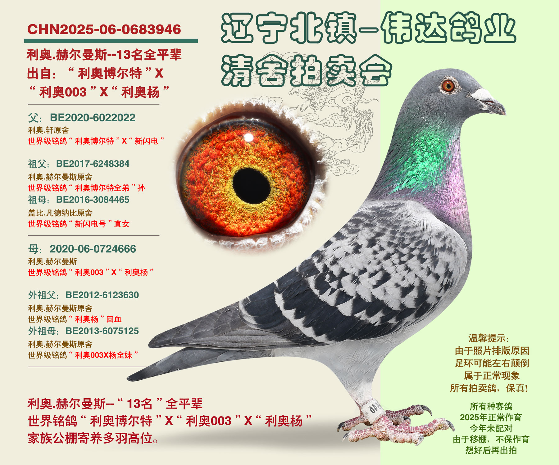 | 1654100 | 利奥-“公棚鸽王季军”全平辈 | ¥500元 | 0次 |
