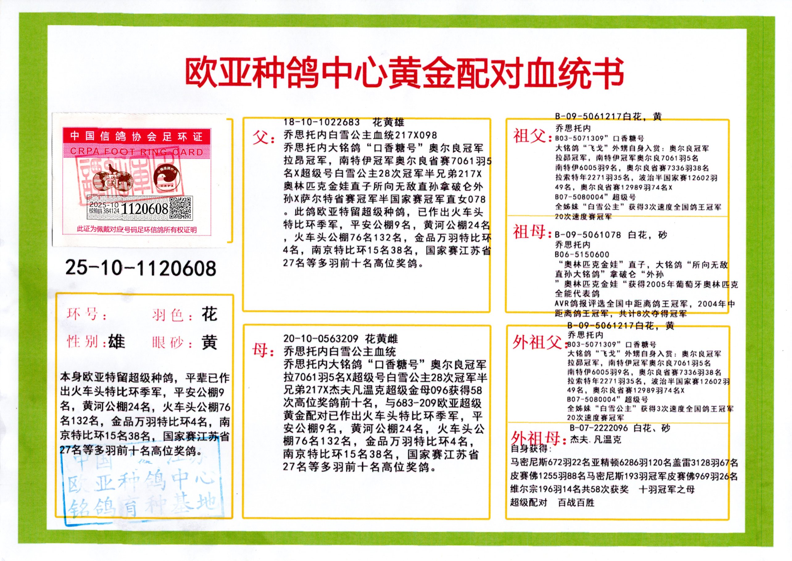 24年秋南京特比环欧亚荣获大团体冠军.小团体冠军551公里大特比13名.14名.16名.19名.20名.21名.24名.26名.27名.28名.42名.52名.54名.57名.65名.66名.68名.70名.71名.72名.74名.76名.80名.82名.83名.84名.85名.86名.90名.92名.110名.116名.121名.122名.128名.131名.158名.161名.164名.165名.166名.172名.174名.177名.182名.195名.196名.201名.205名.208名.210名.216名.253名.269名.275名.276名.294名.296名.299名,,24年秋云南天南铜都公棚决赛415名.天南铜都小棚决赛409名.云南玉活公棚决赛102名.490名.团体32名上笼二羽进二羽,天南铜都大棚506公里决赛445名。热烈祝贺河北省巨鹿县李兰生老师用欧亚泰山号血系连续十一年夺冠军,河北省国家赛冠军.全国季军等多次前十名高位,扬州王军王总用欧亚利奥24年春季获山东翔宇公棚决赛33名盖比53名。南京刘正龙刘总用欧亚盖比获得24年秋山东潍坊国际公棚决赛42名.精英赛30名.三关鸽王71名.决赛86名.加站赛16名.南京市特比环A组鸽王9名.B组鸽王5名.6名.C组鸽王5名.精英赛冠军4名.技能赛A组冠军4名.5名.秦淮区特比环荣获15名.46名.48名.87名。四川西昌徐亮徐总用欧亚利奥获得凉山州聚友决赛177名.第二关亚军双关鸽王19名.三关鸽王105名.云南豪庭公棚决赛603名。热烈祝贺24年四川重庆翔园鸽舍用欧亚泰山号荣获春季400公里冠军.秋季500公里冠军,河北王总用詹森X利奥获得千羽千翔公棚400公里冠军,广东蔡楷焕荣获24年秋爱好者 赛鸽俱乐部三关鸽王季军.一关420公里99名.二关450公里11名.三关520公里32名.单关季军.7名.12名,江西李卫兴荣获贵州红枫公棚8名.共翔俱乐部寄养棚四关综合鸽王30名.一关400公里78名.二关500公里55名.三关520公里37名.四关500公里57名.同父母获公棚18名.雷鸣获得武汉黄浦育翔中心冠军,四川陈文获得四川明鸿俱乐部300公里梦幻2名.3名.4名.9名.10名.13名.14名.15名.31名.34名.40名.41名.42名.43名.69名.71名.72名.73名.74名.94名.95名.97名.98名.99名.419公里决赛荣获总冠军7名.总共归巢9羽,四川徐亮获豪庭决赛603名,山西郑勇获得山西泰鑫公棚决赛255名詹森红狐,热烈祝贺马总获得开尔(飞跃队)决赛9名获奖金1310000万元.第一关52名,天津津福资赛180公里96名.获奖金429543万元,欧亚支持全国鸽友24年秋多人报喜 祝大家取得更好成绩,给欧亚报喜鸽友欧亚决定给每人赠送一羽超级种鸽。欧亚俱乐部特比环多关鸽王成绩:15年秋淮安特比环黑色星期一全会上笼9700多羽,当天无鸽归巢,第二天全会归巢357羽,本舍归巢158羽.前十名八羽.前一百名归巢57羽,16年春季获五关鸽王总冠军,总亚军四名.六名.七名.九名.十名.晶艺俱乐部520公里冠亚季军5名.6名.7名.9名.11名等,火车头冠军.季军6名.8名.9名.10名,16年秋晶艺俱乐部特比环520公里亚军.季军4名.6名.7名.9名,15年春南京白下特比环冠军.亚军.季军6名.7名.8名.9名.10名.指定鸽A B组获得冠军.亚军.季军4名.5名.,17年淮安特比环亚军.4名.5名.7名.8名.10名.六关鸽王总冠军.4名.6名.9名.10名,寄养棚宿迁刘总20羽特比环获冠军.季军.4名.7名.8名.9名等。18年荣获万羽特比环六关鸽王总冠军.总亚军.总季军.6名.8名.十名.单关四羽冠军.二羽亚军.四羽季军.前十名27羽。19年秋万羽特比环六关鸽王总亚军.总季军.5名.8名等,单关二羽冠军.三羽亚军.一羽季军前十名31羽。20年秋淮安市鸽会四关特比环大赛风雨无阻鸽王亚军.鸽王六名,金品俱乐部万羽特比环六关鸽王总冠军,总亚军.四名.五名.六名.七名.八名.十名.前二百名鸽王35羽,单关冠亚季军前十名四十多羽,火车头五关鸽王季军.六名.八名.前二百名鸽王十七羽。20年春荣获淮安五区一市四关鸽王总冠军.亚军.四名.八名.九名。21年秋荣获金品万羽特比环大赛六关鸽王总亚军.总季军.四名.七名.九名.十名.单关冠亚军季军前十名三十多羽。火车头协会鸽王六名.七名.十名.单关前十名十七羽。22年秋荣获鸽王总冠军.总亚军.5名.7名.8名.9名.11名.单关冠亚季军前十名三十多羽,第一关单关前二百名四十多羽,第二关前二百名三十多羽,第三关前二百名四十多羽,第四关前二百名四十多羽,第五关前一百名53羽。23年秋荣获鸽王季军.五名.八名.十名.13名.17名.20名.27名等多羽鸽王.单关前十名二十多羽。公棚.寄养棚部分成绩:16年秋宁夏黄河公棚总冠军电脑戈马力指定通炮冠军,17年送八羽参赛获得鸽王八名进奖四名,支持韩总荣获八名。支持鸽友荣获宁夏中卫公棚决赛总冠军.精英赛冠军,支持18年宁夏黄河公棚决赛冠军詹森X泰山。安徽鼎博寄养棚院内外四关鸽王总冠军.鸽王十七名.三十七名同窝,鸽王39名.42名.58名.67名。18年山东公棚预赛冠军.决赛65名.送八羽进奖五羽.指定获奔驰汽车一辆。支持鸽友获得云南蓝云公棚冠军.盖比X佛卡门。支持鸽友荣获云南银集公棚决赛冠军 詹森427X520血系 速度赛6700羽冠军。17年荣获金马俱乐部寄养棚四关鸽王总冠军.季军.六名.八名.第一关冠军.亚军.季军四名.七名.十一名.金牌教练奖。支持鸽友18年北京费翔公棚预赛九名电脑X桑杰士,支持鸽友荣获陕西威力公棚决赛11名.内蒙古临河寄养棚四关鸽王六名.詹森配泰山,支持河北王总用欧亚詹森427配胡本喜获20年秋开尔青年棚季军。云南东荣公棚16年预赛冠军.决赛77名.17年决赛12名.詹森红狐X泰山,17年平安公棚决赛4名 詹森427。欧亚获得21年金母寄养棚第一关四名.第二关5名.第三关5名.6名.7名.10名.三关鸽王总冠军,四关鸽王14名.十羽鸽王。支持河