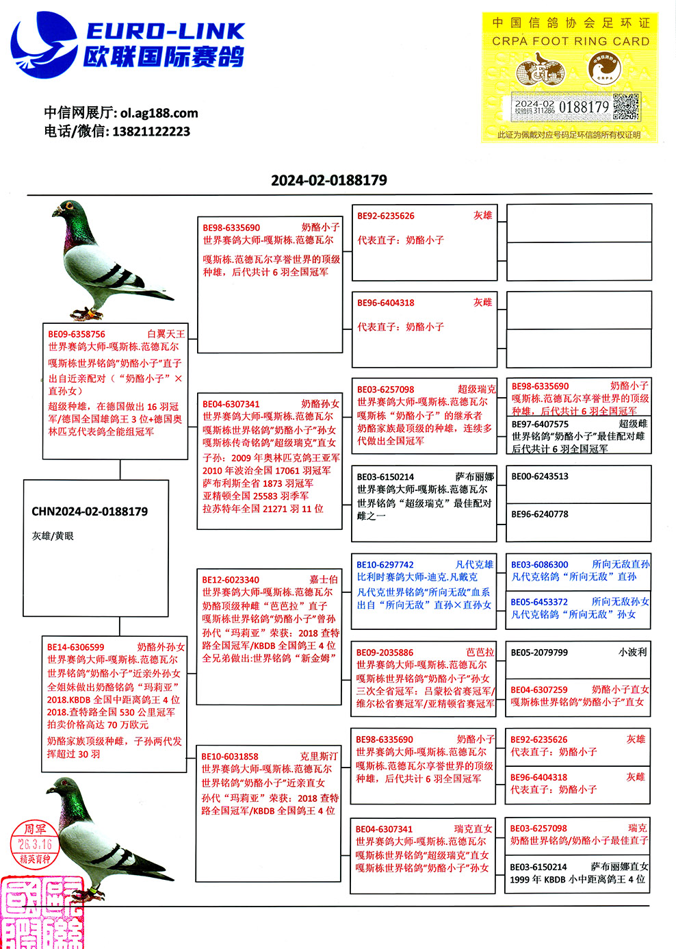 - 当前查看拍卖鸽:奶酪鸽系鼻祖“奶酪小子”直孙