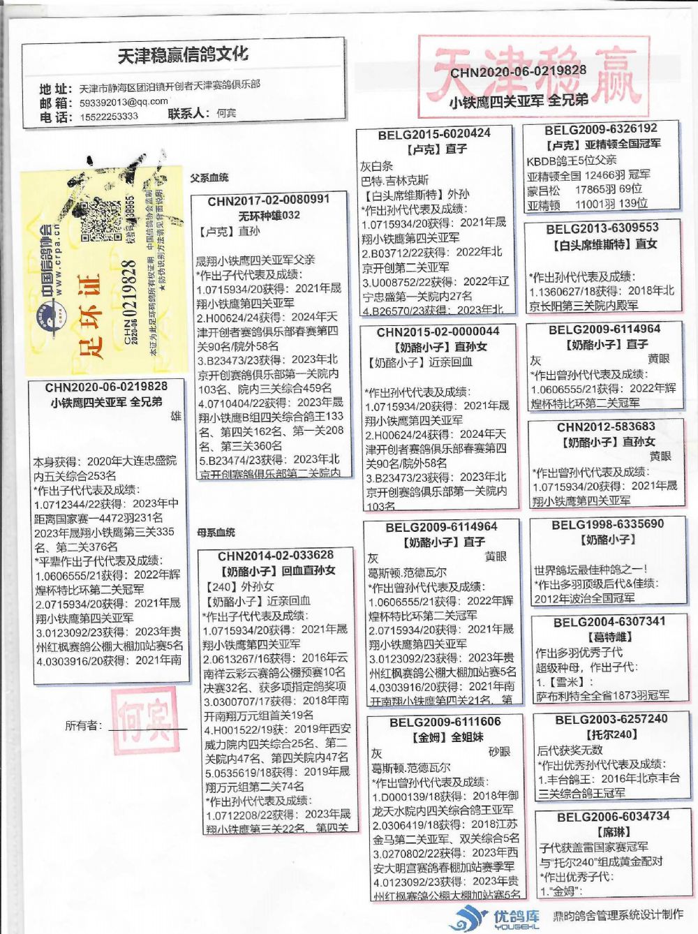 特别说明:本次拍卖分未交费重启拍卖,中标鸽友请3日内付款;如得标鸽友为县级城市或者汽运火车无法直达的请提前联系好18611020281,否则所有责任归买方承担!