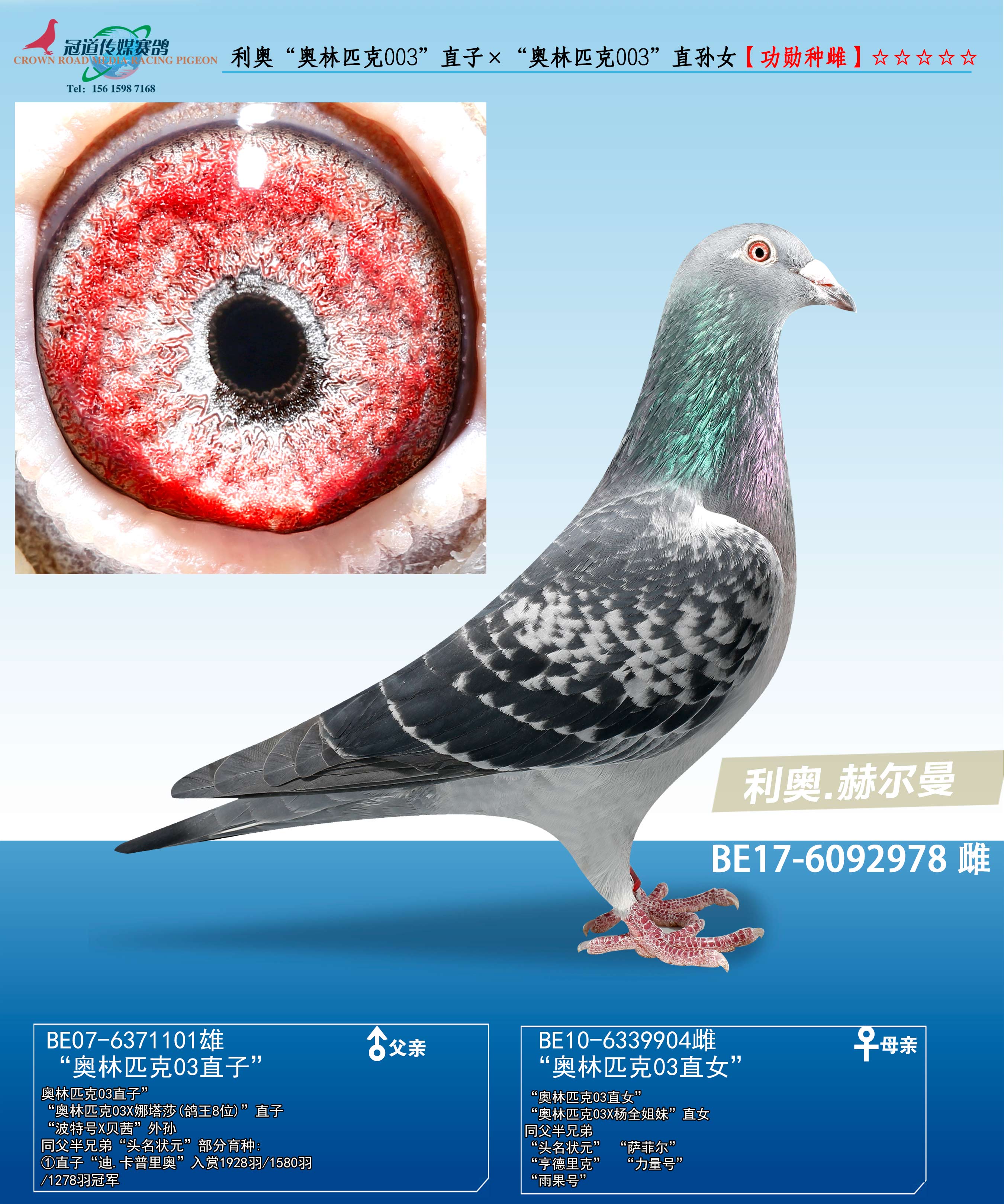 | 1654456 | FCI世界最佳短距离鸽鸽王全国1位(“白人”)近亲 | ¥600元 | 0次 |