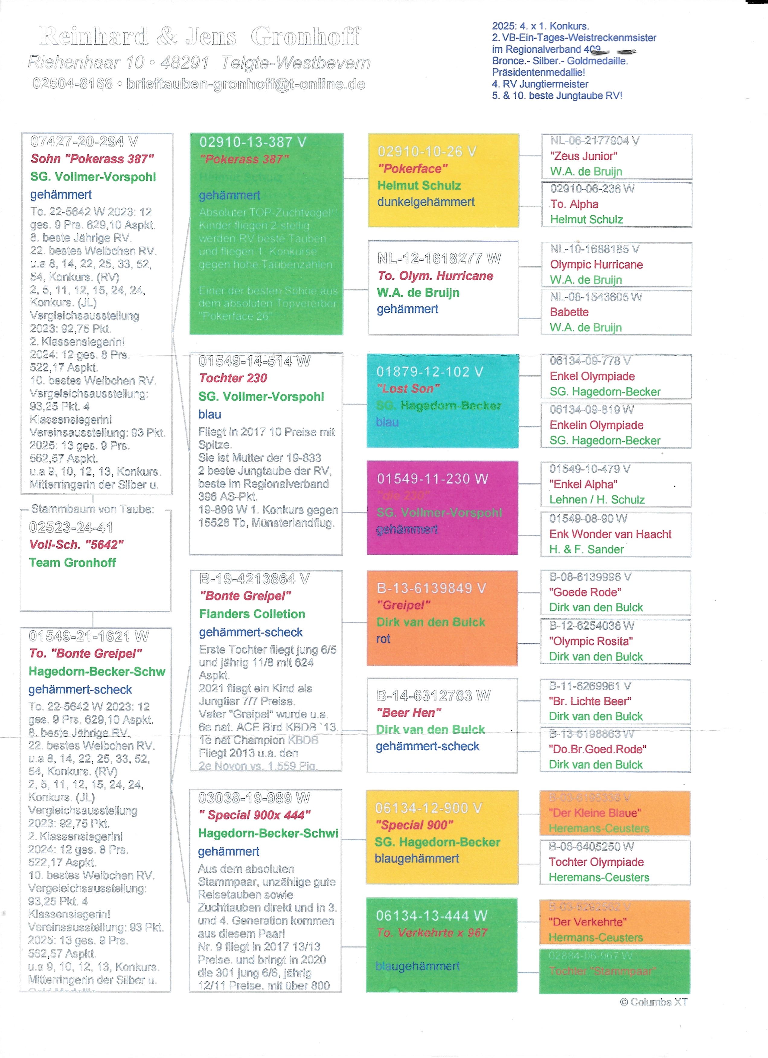 - 血统:鸽王8名全妹、奥林匹克飓风号、奥林匹克003回血、奥林匹克罗西塔直系