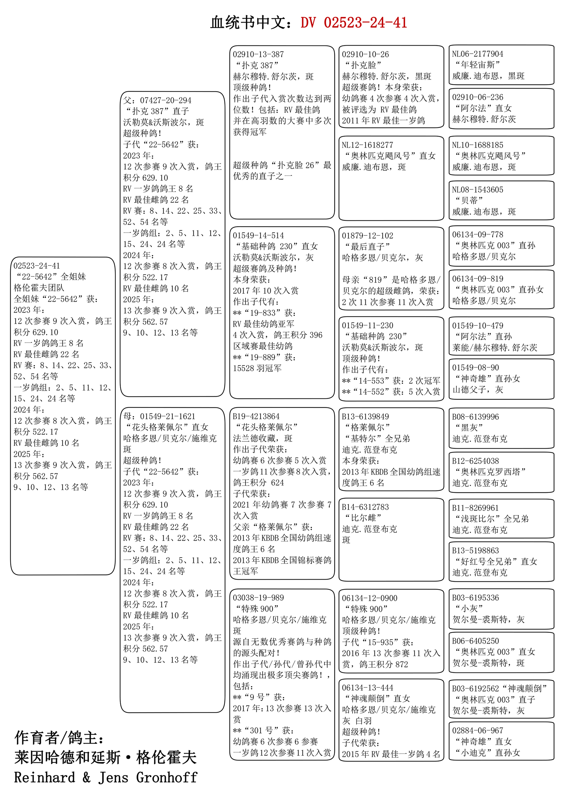 家族赛绩、血统,请见中文血统书。