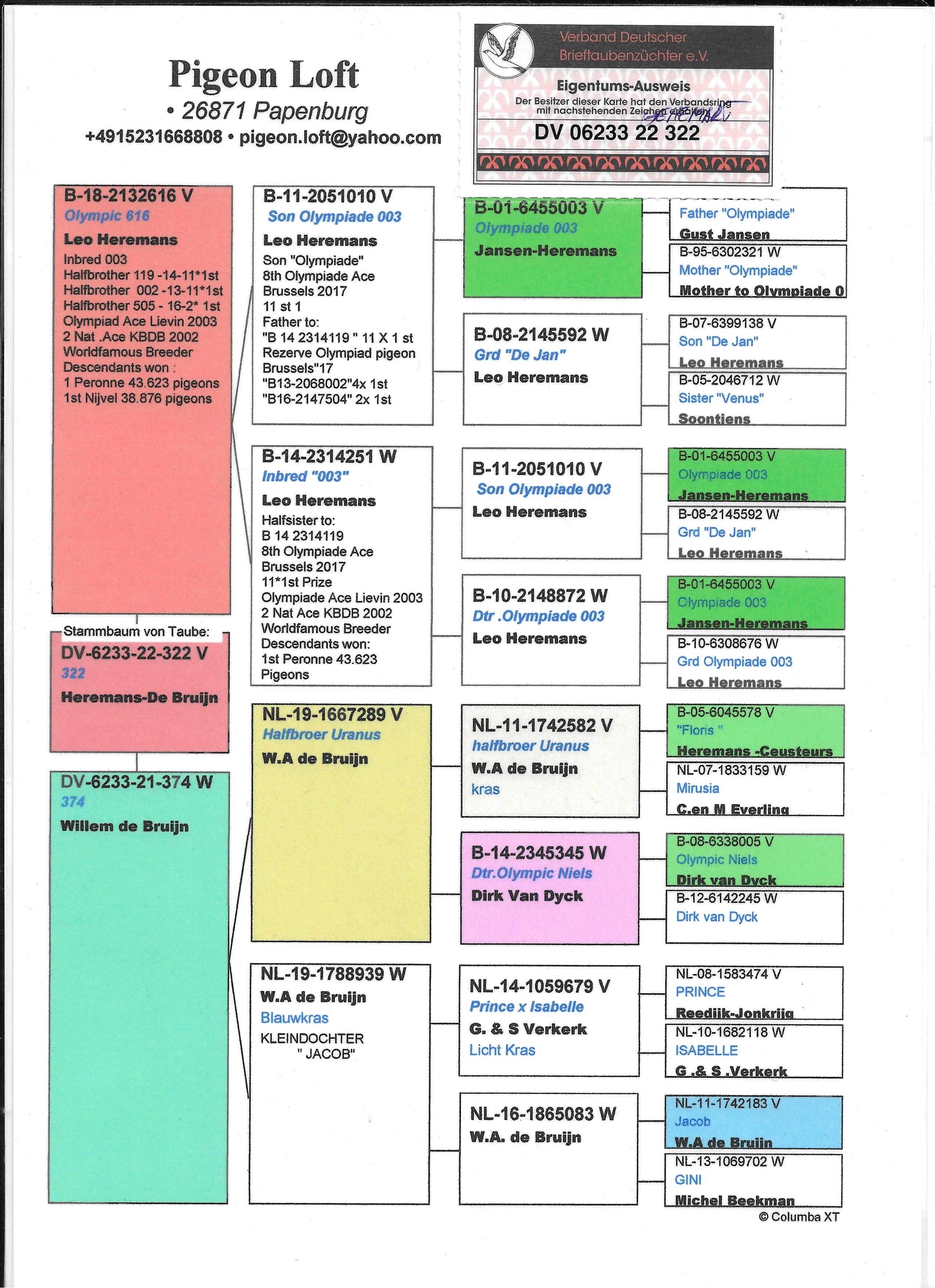 - 当前查看拍卖鸽:奥林匹克003曾孙322 雄