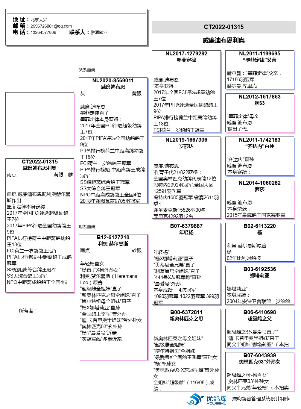 | 1654504 | 维切恩斯提奥 盖比波治国家赛3788羽冠军本吉曾孙 | ¥500元 | 0次 |