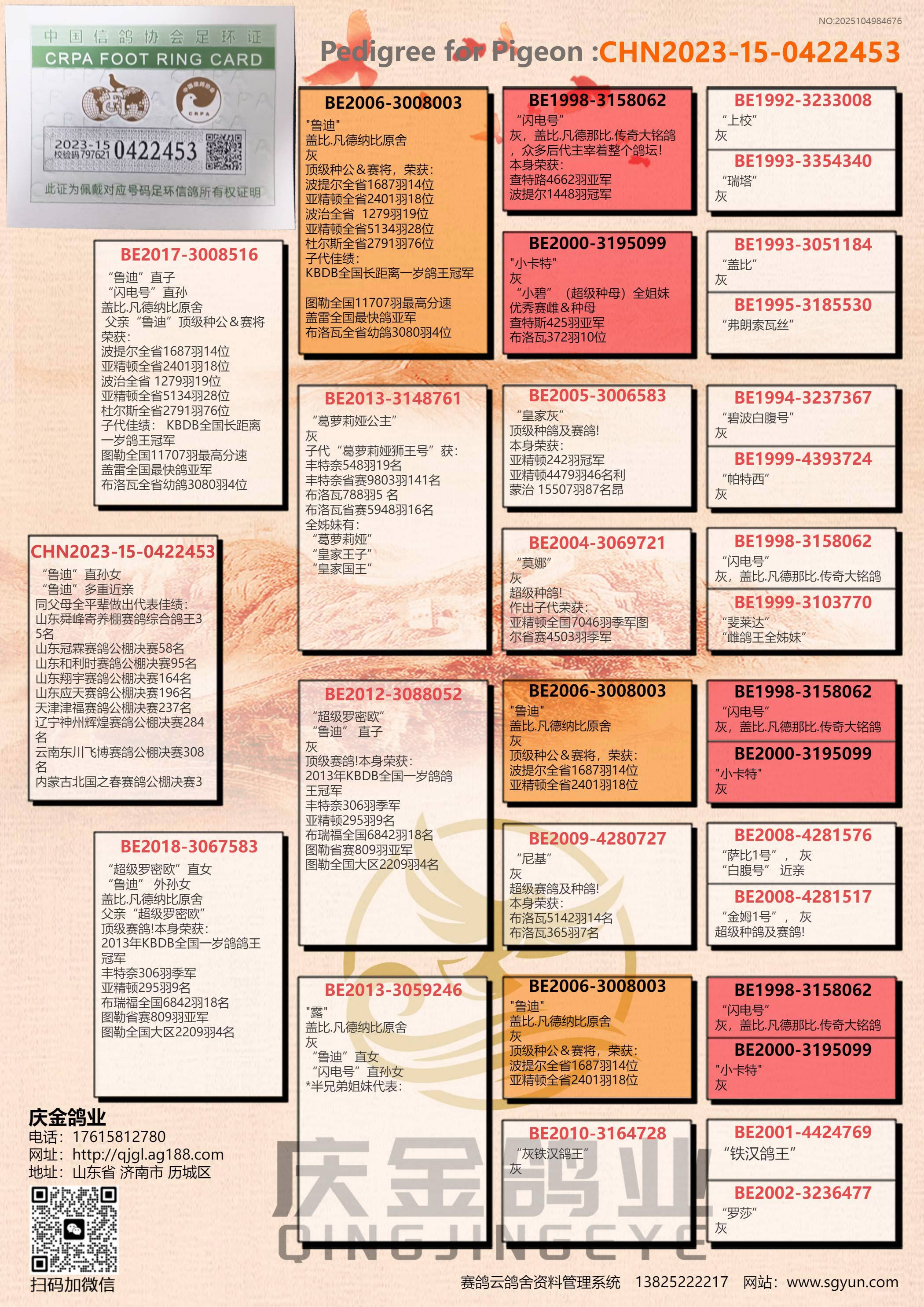 1654536 利奥.赫尔曼斯“鸽王杨”直子x“鸽王杨”直孙女 ¥0元 0次