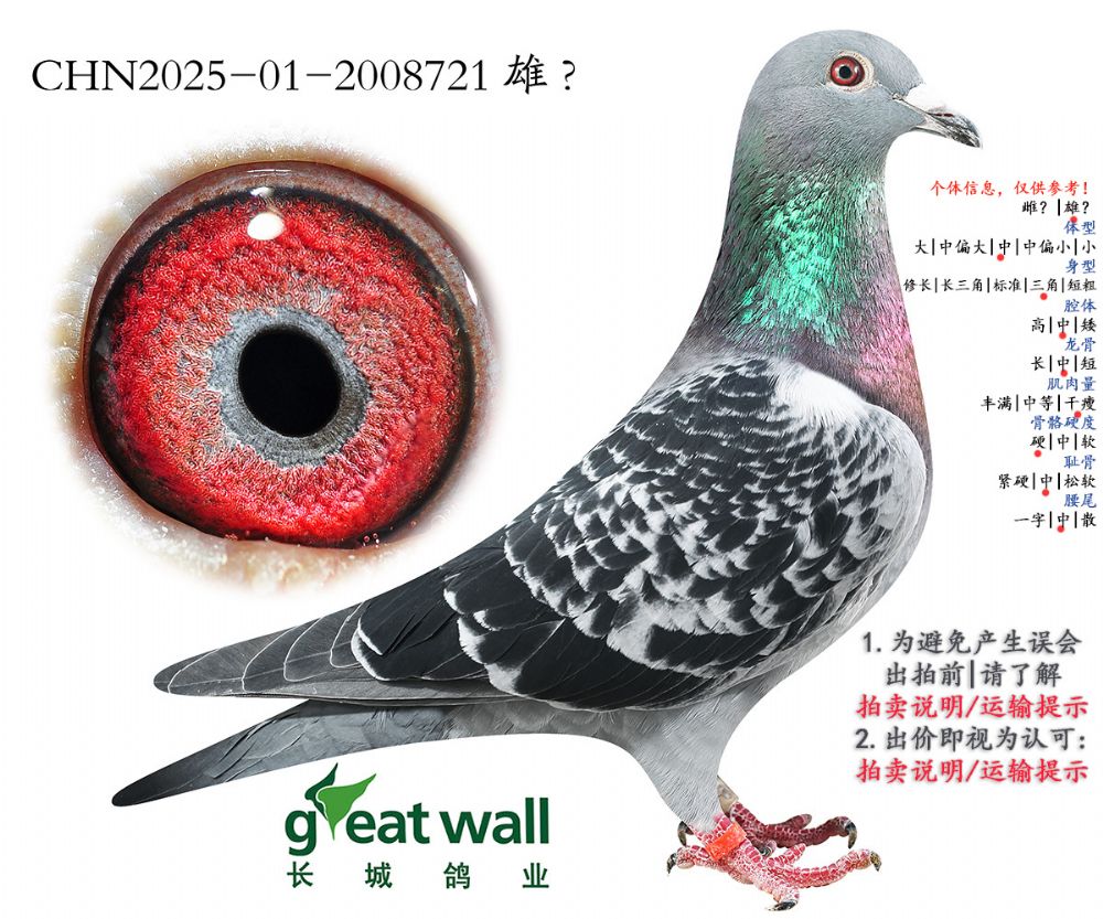 因拍卖鸽均是未做育过的种鸽或幼鸽,图内所标雌雄仅供参考,实际性别已实物为准。不做退换理由。