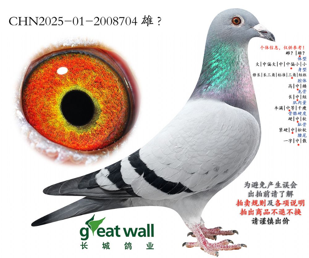 因拍卖鸽均是未做育过的种鸽或幼鸽,图内所标雌雄仅供参考,实际性别已实物为准。不做退换理由。