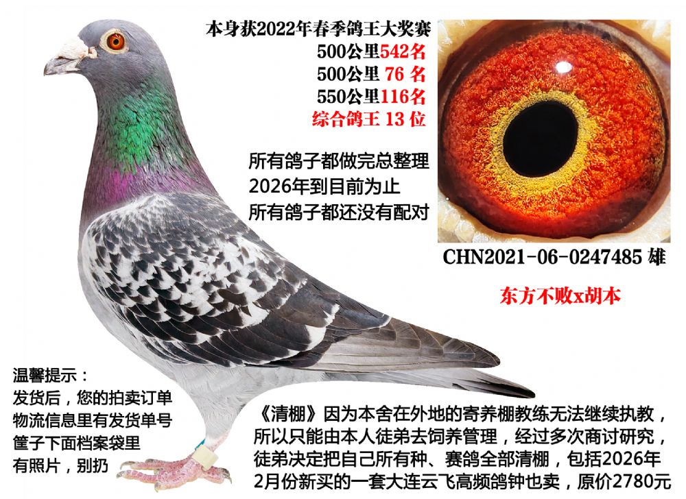 | 1654611 | 东方不败x胡本(2025年四关成绩鸽,500公里13名等) | ¥300元 | 1次 |