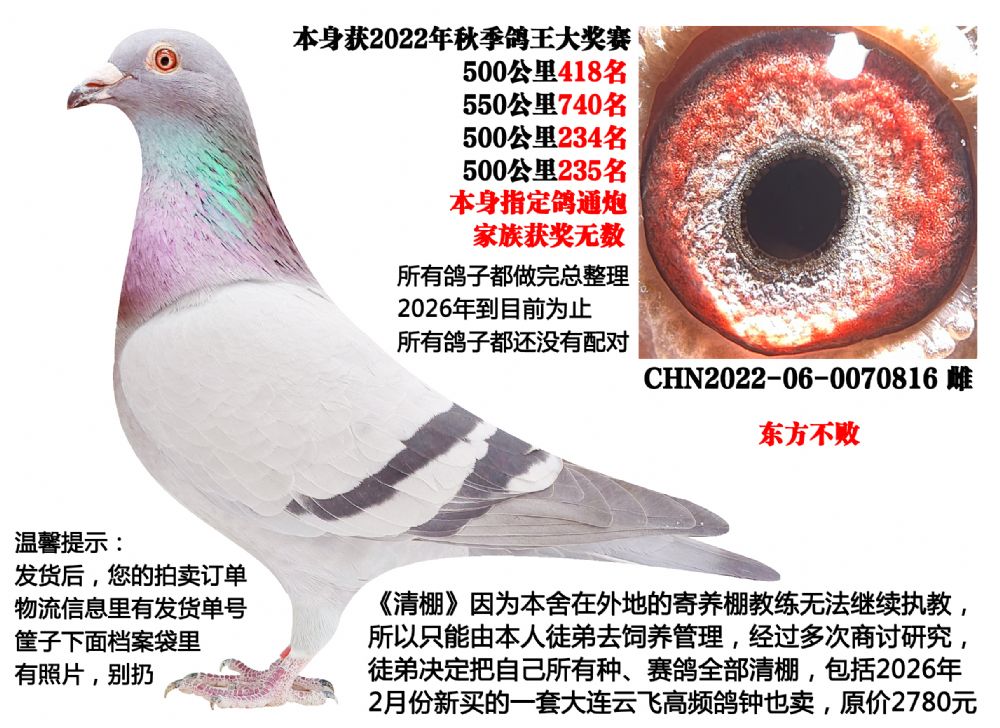 - 当前查看拍卖鸽:东方不败(四关成绩鸽,指定鸽通炮)