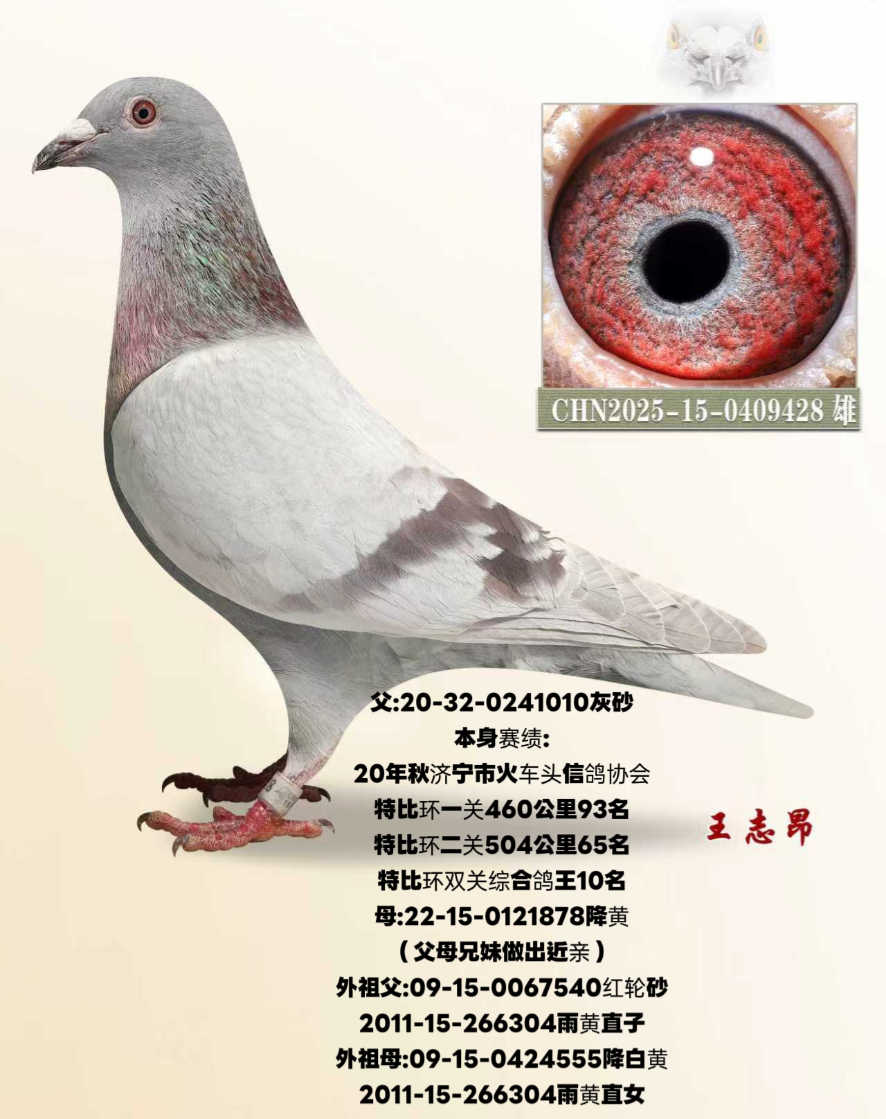 济宁市火车头信鸽协会特比环双关综合鸽王10名X(304直子X直女)做出
