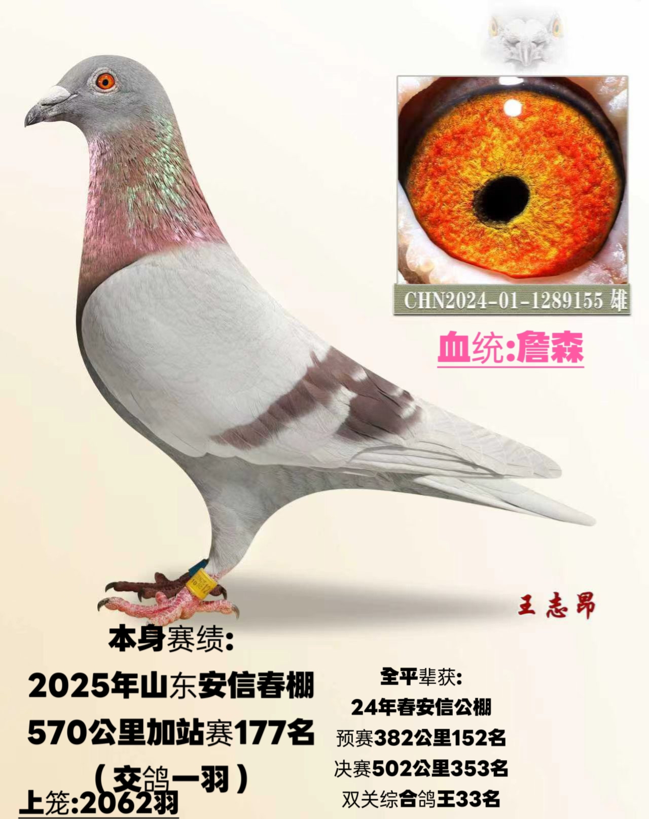 2025年春山东临沂安信公棚(参赛费2000),加站赛获177名,本舍仅交一羽。全平辈24年临沂安信公棚预赛152名决赛353名,双关鸽王33名,集鸽15000多羽