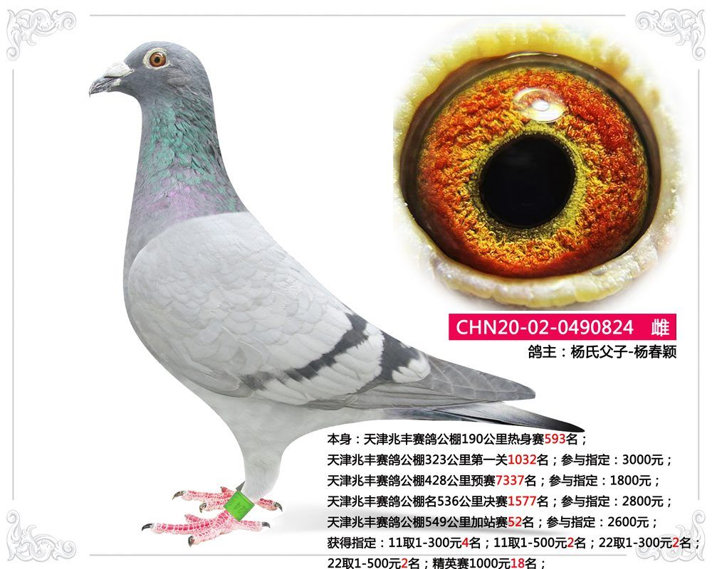 天津兆丰赛鸽公棚名536公里决赛1577;参与指定:2800元;