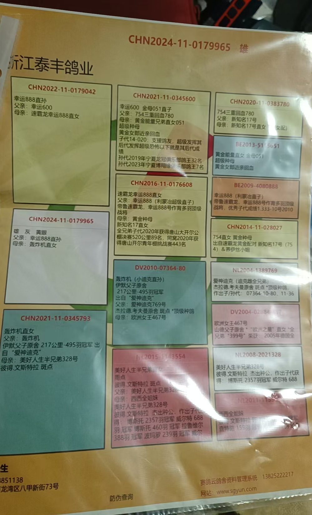 - 当前查看拍卖鸽:浙江泰丰鸽业-杨选飞965 雄
