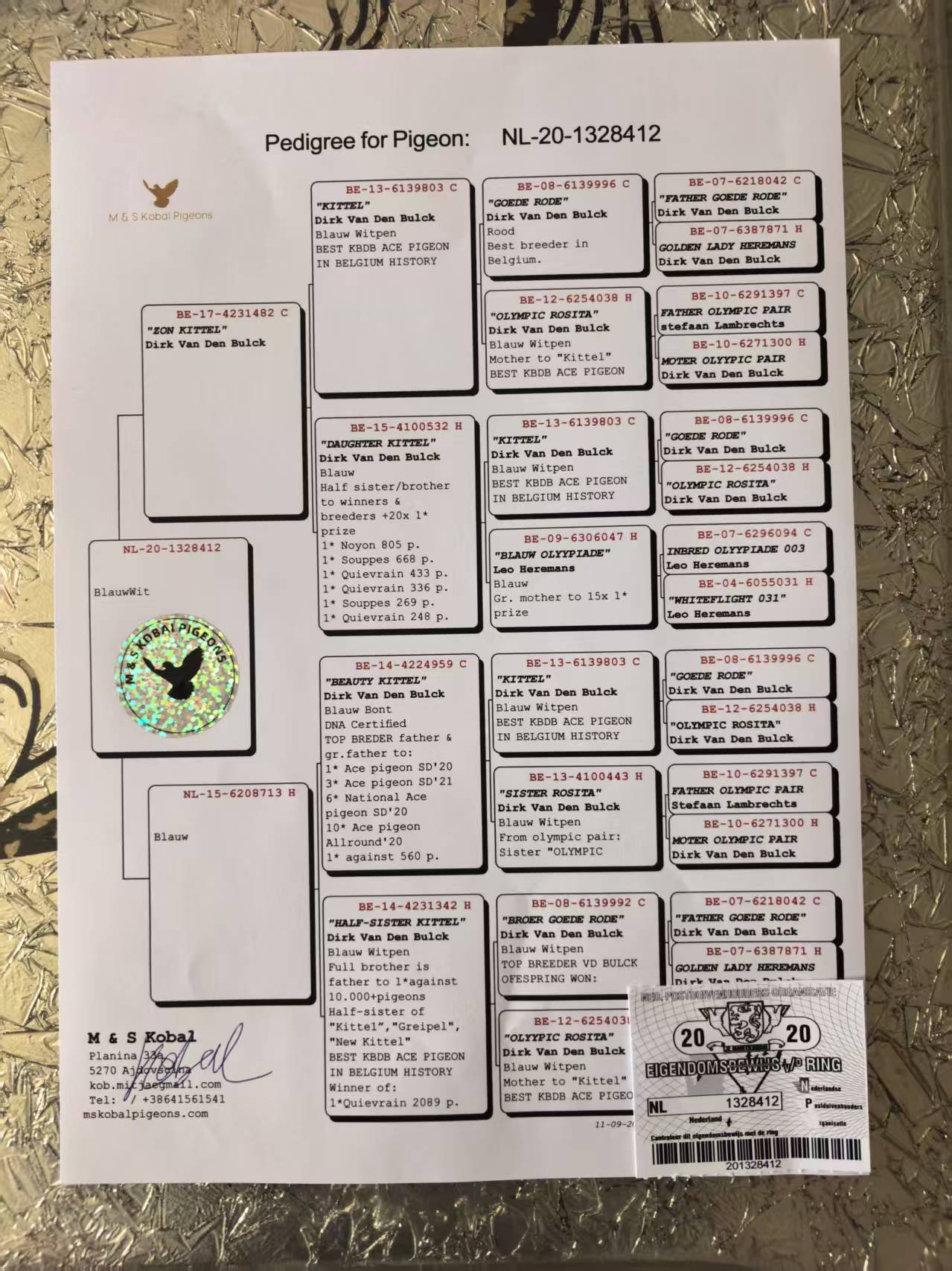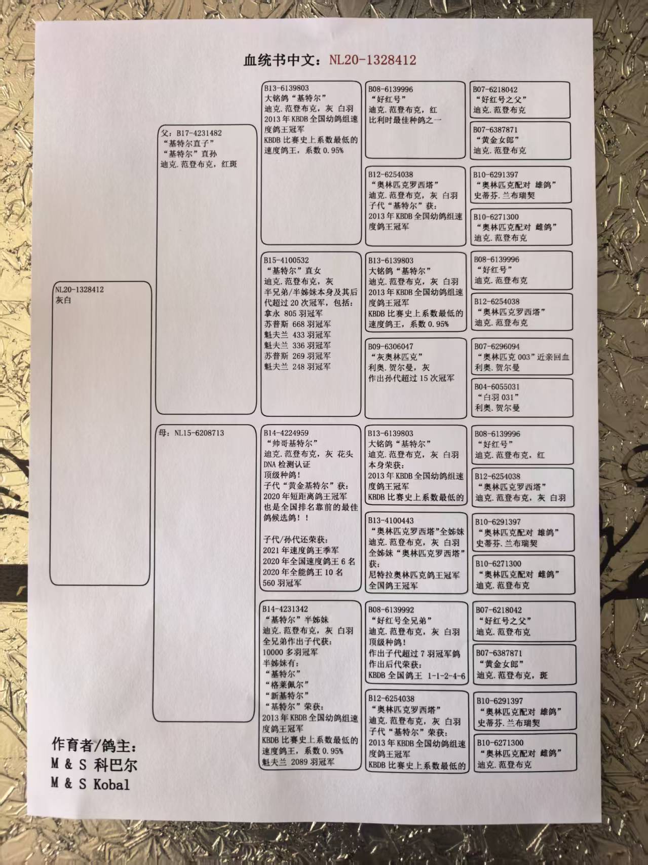- 当前查看拍卖鸽:科巴尔 基特尔近亲回血作出412