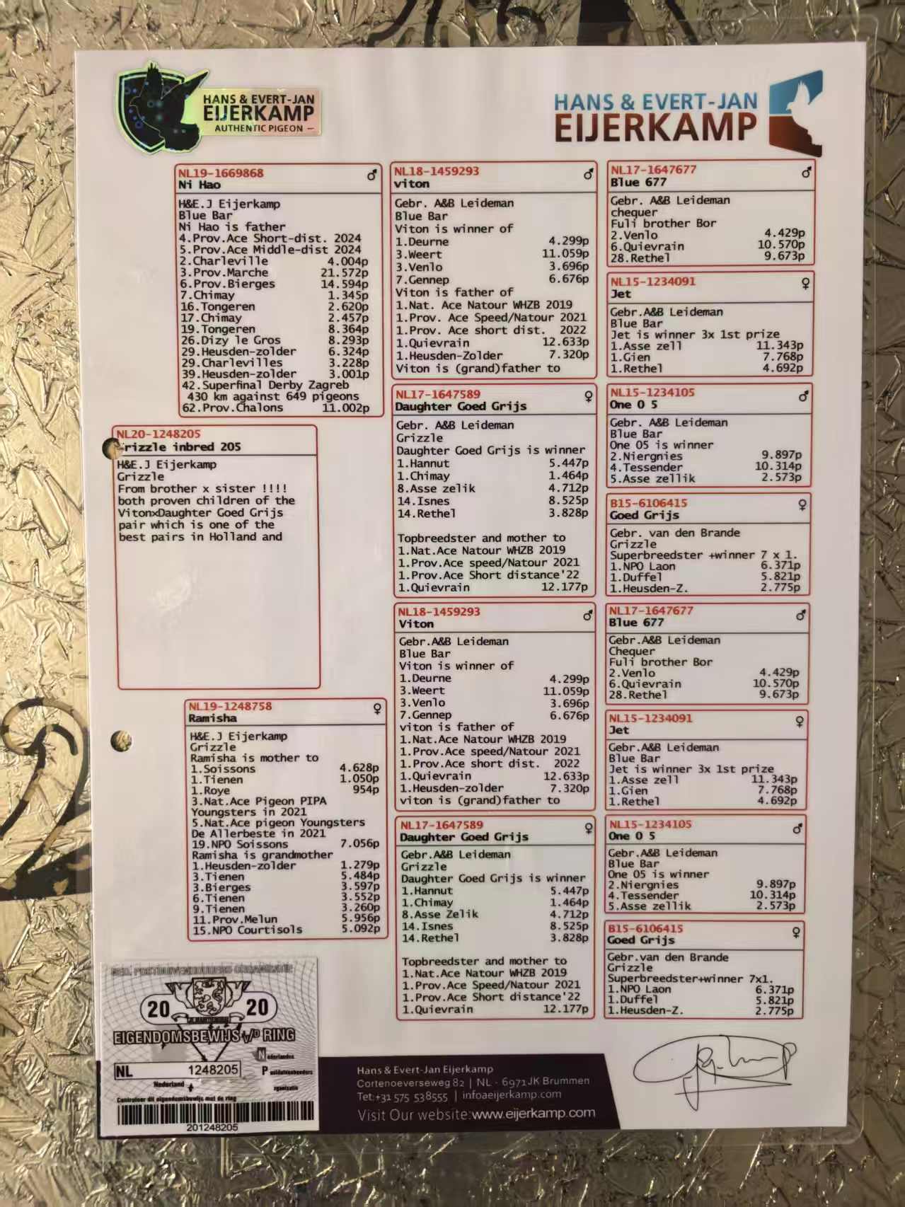 所有拍卖种鸽作育一切正常,因换环境不保作育~!