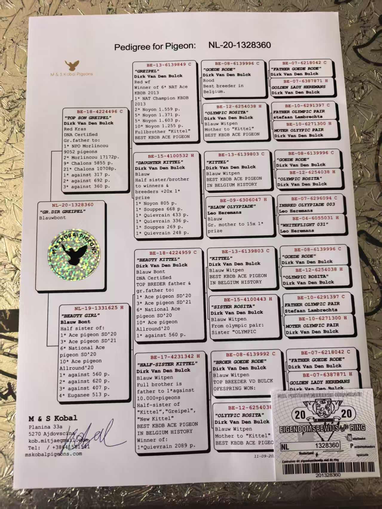 - 当前查看拍卖鸽:科巴尔 基特尔近亲回血作出360