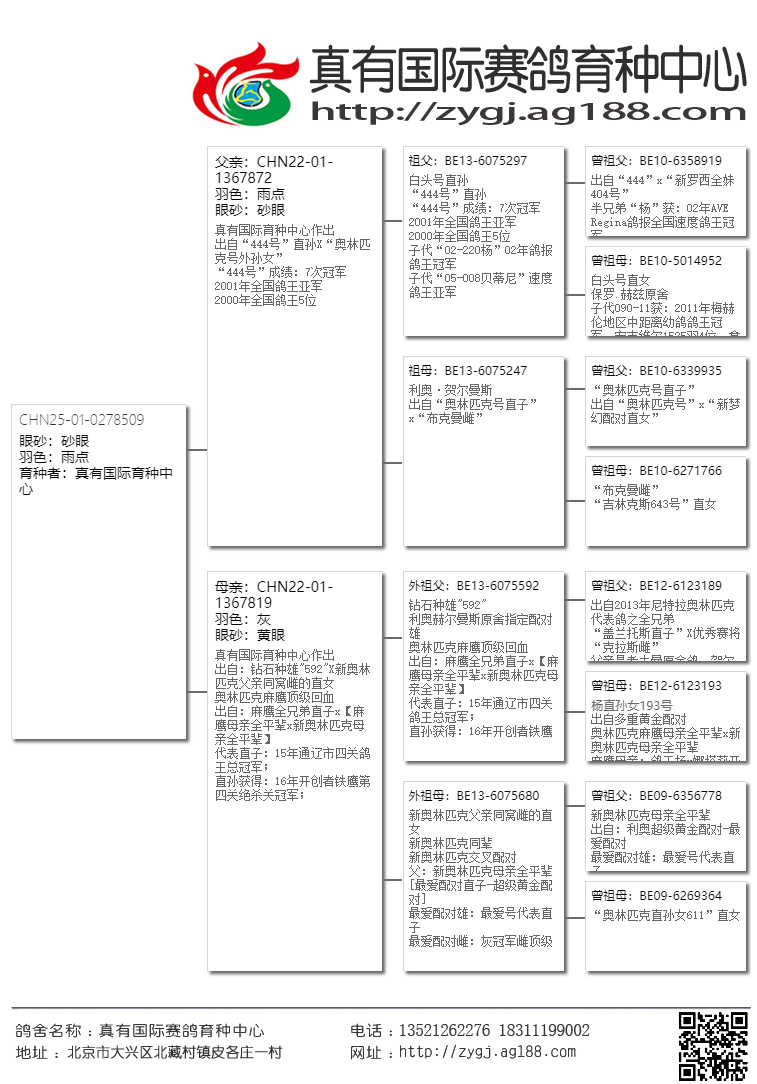 【在这三座金矿还未被世人发现之前,真有国际就第一时间把高品质的鸽子带到了国内,取得了空前的发挥。近几年大家才逐渐认识这几位大师鸽子的魅力。请记住!当任何商业鸽舍进入炒作后期的时候,他的鸽子质量与价值都会急剧下降,即便是詹森兄弟也难免于此。所以引进这家鸽舍最巅峰时期的鸽子,得以延续,才是真有国际成功的致胜法宝。】