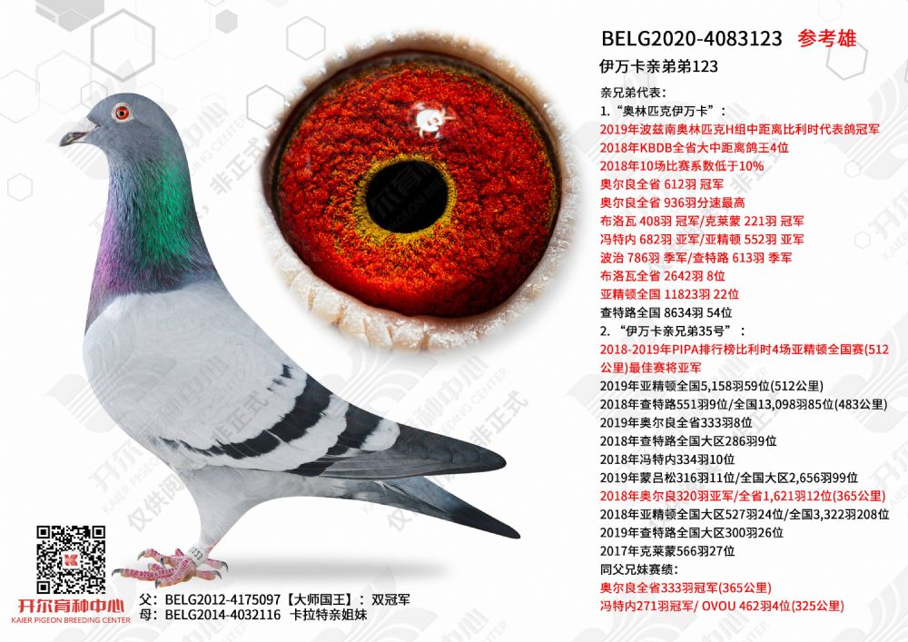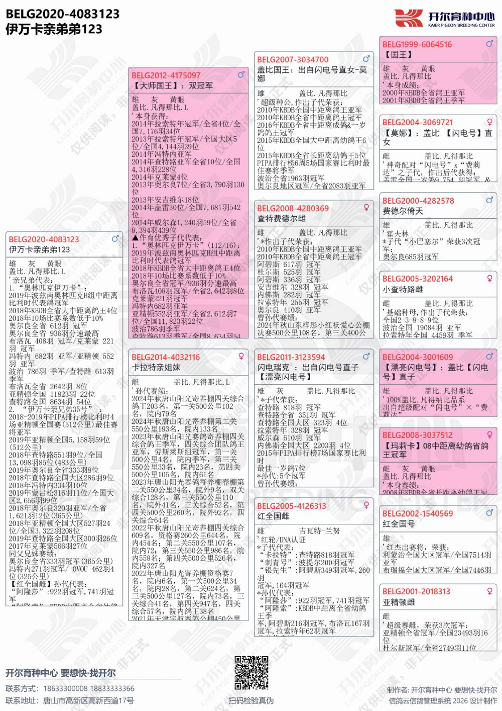 | 1655447 | 24年开尔青年队四关鸽王5名,三关鸽王亚军×警探哈里直女 | ¥5500元 | 2次 |