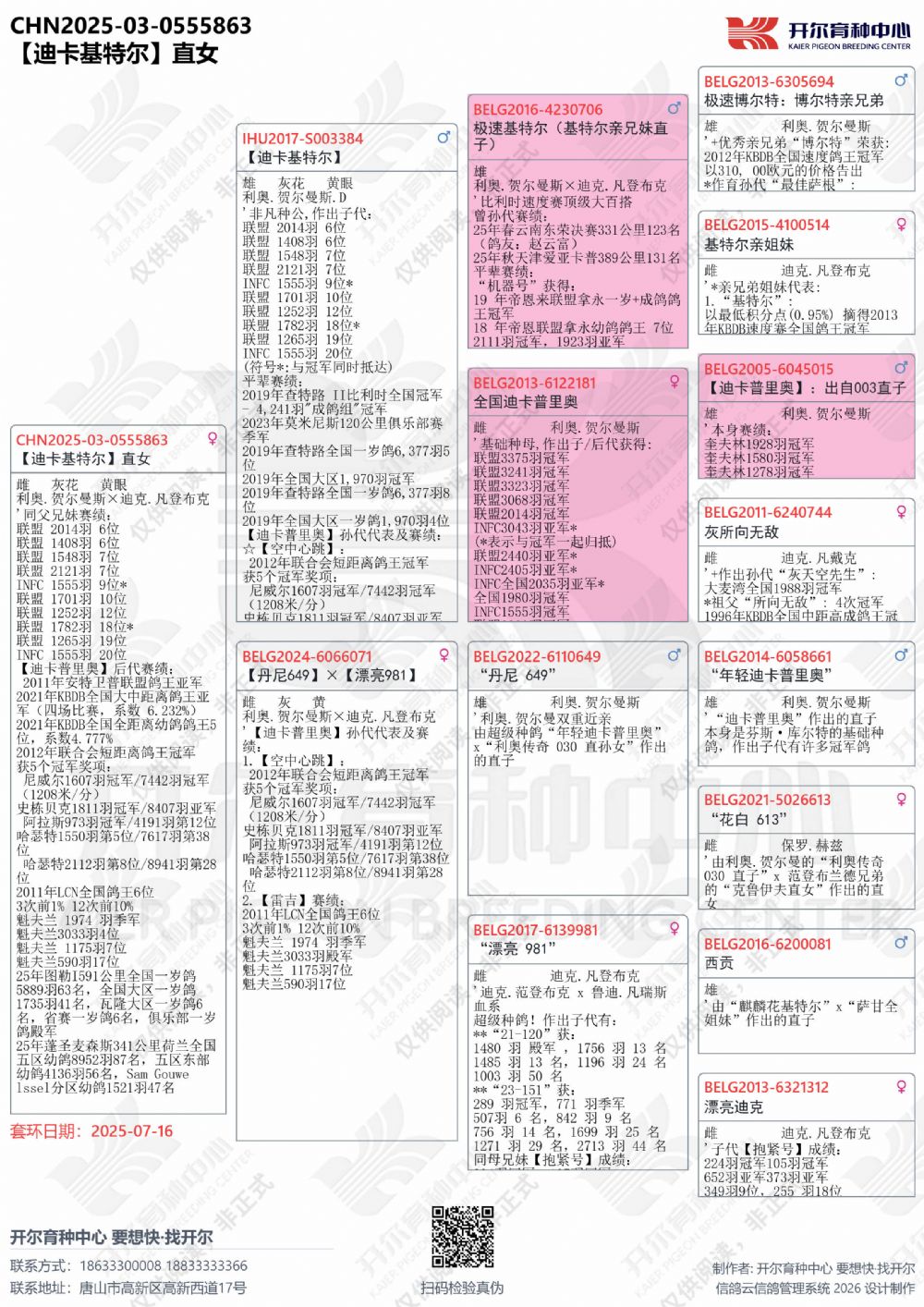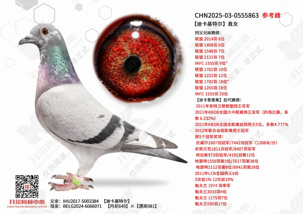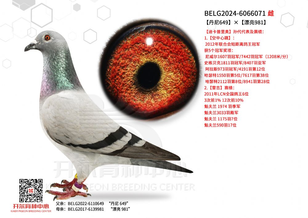 | 1655447 | 24年开尔青年队四关鸽王5名,三关鸽王亚军×警探哈里直女 | ¥5500元 | 2次 |