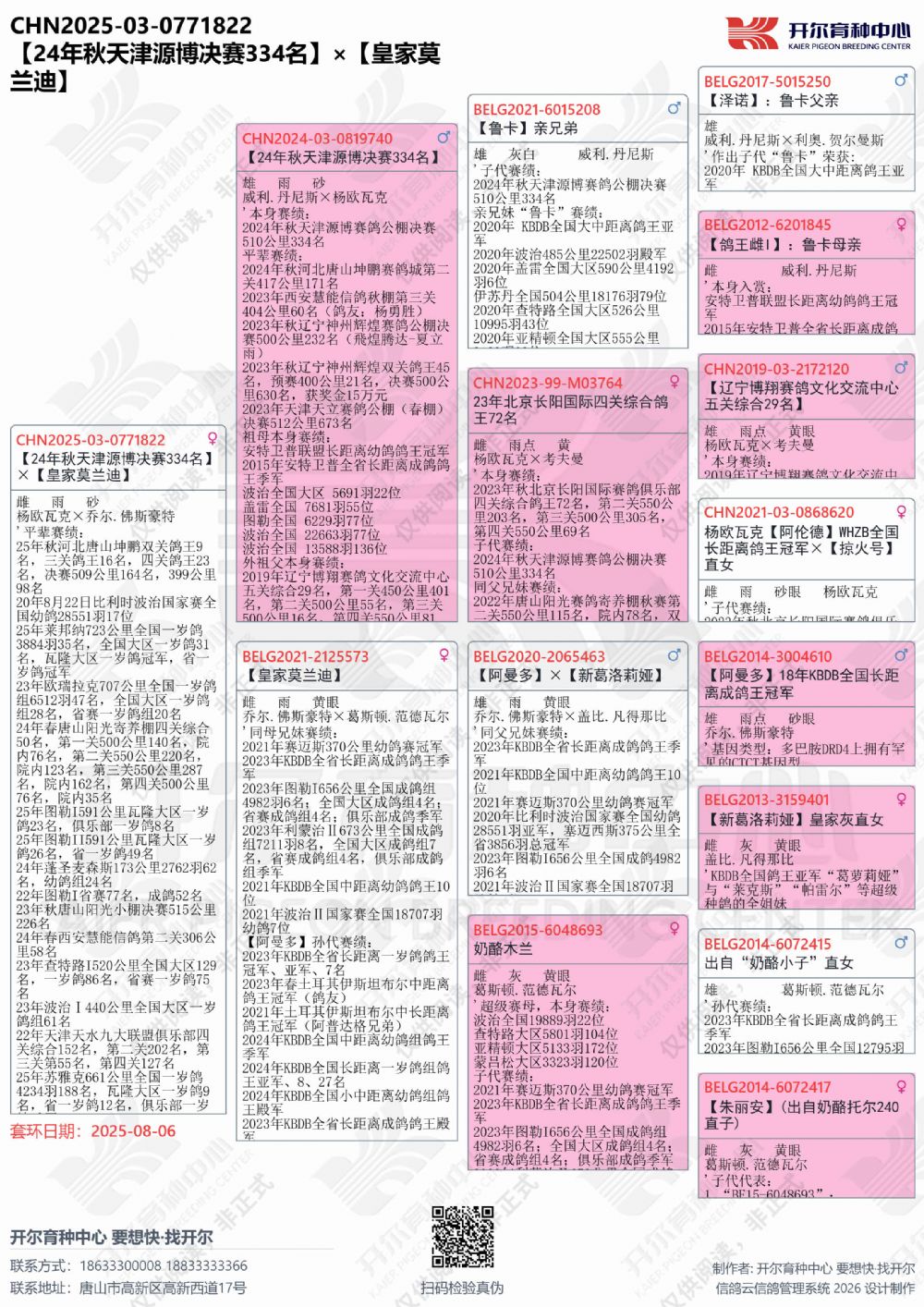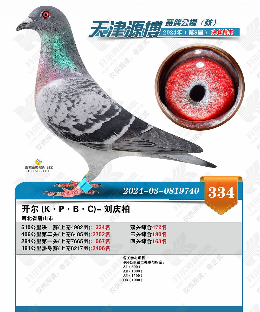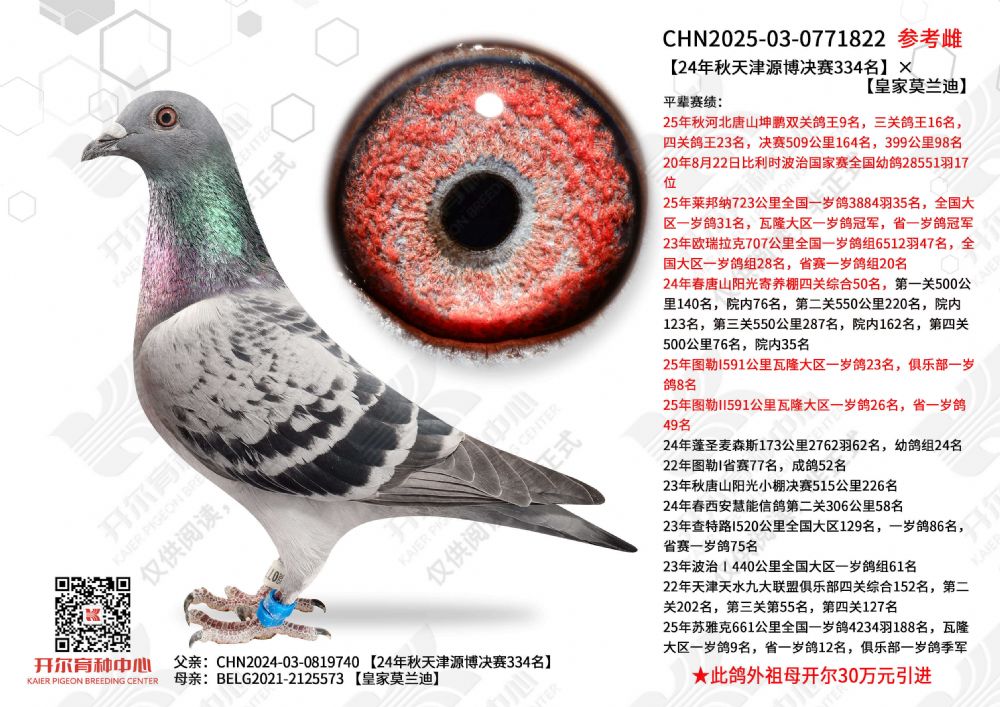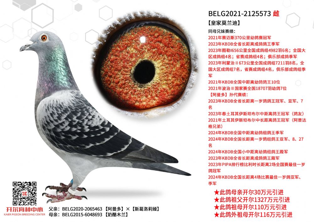 | 1655447 | 24年开尔青年队四关鸽王5名,三关鸽王亚军×警探哈里直女 | ¥5500元 | 2次 |