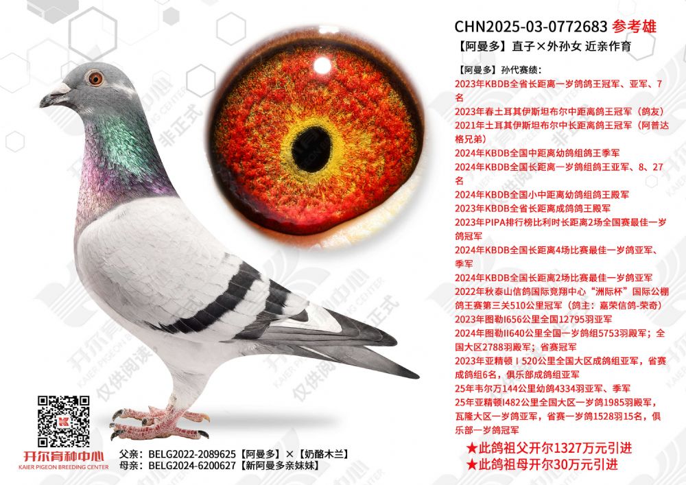 | 1655460 | 阿曼多外孙×直孙女 近亲作育 | ¥5500元 | 2次 |