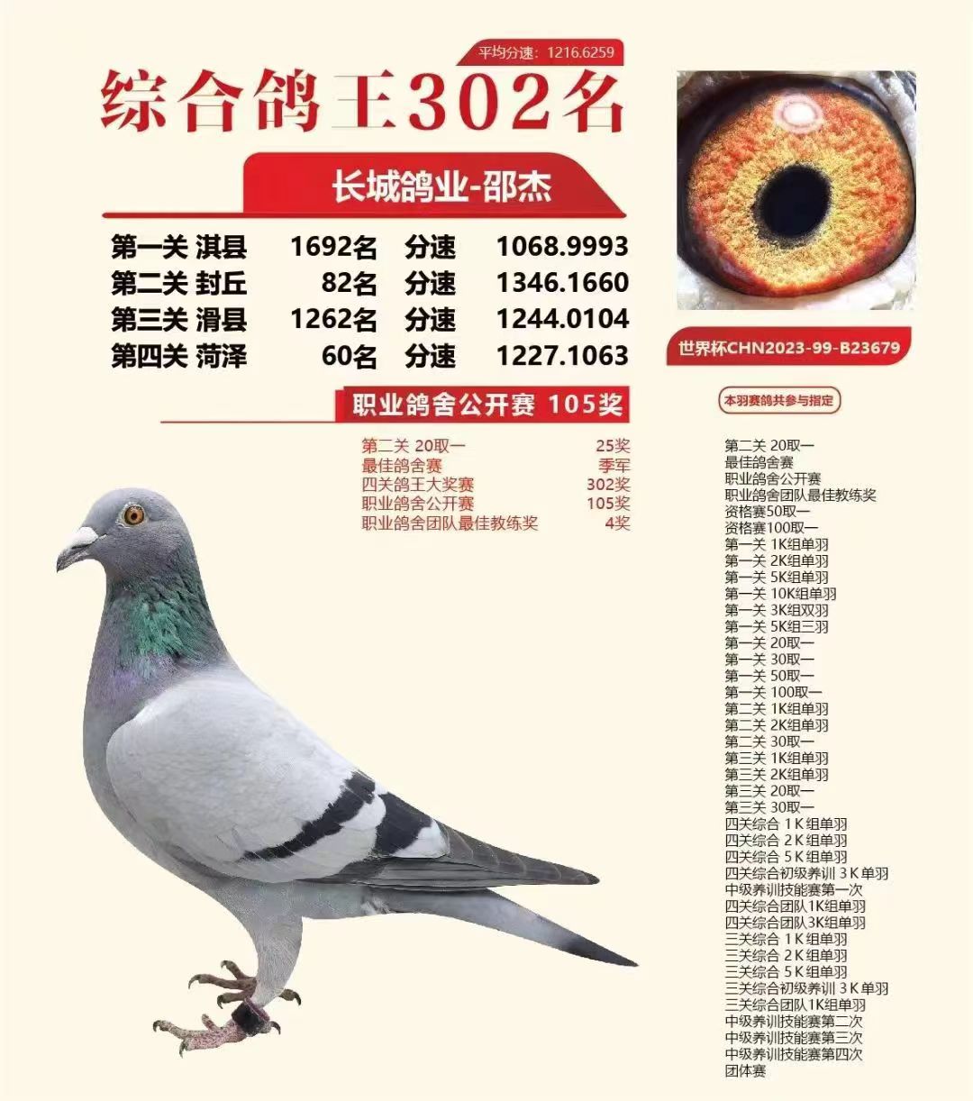 2022年齐鲁庆良父子鸽业获得“世界杯”舜峰站四关鸽王102名