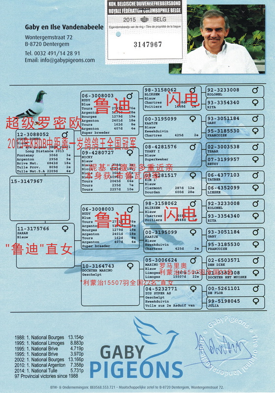 2014年图勒615km11707羽全国总冠军之父亲
