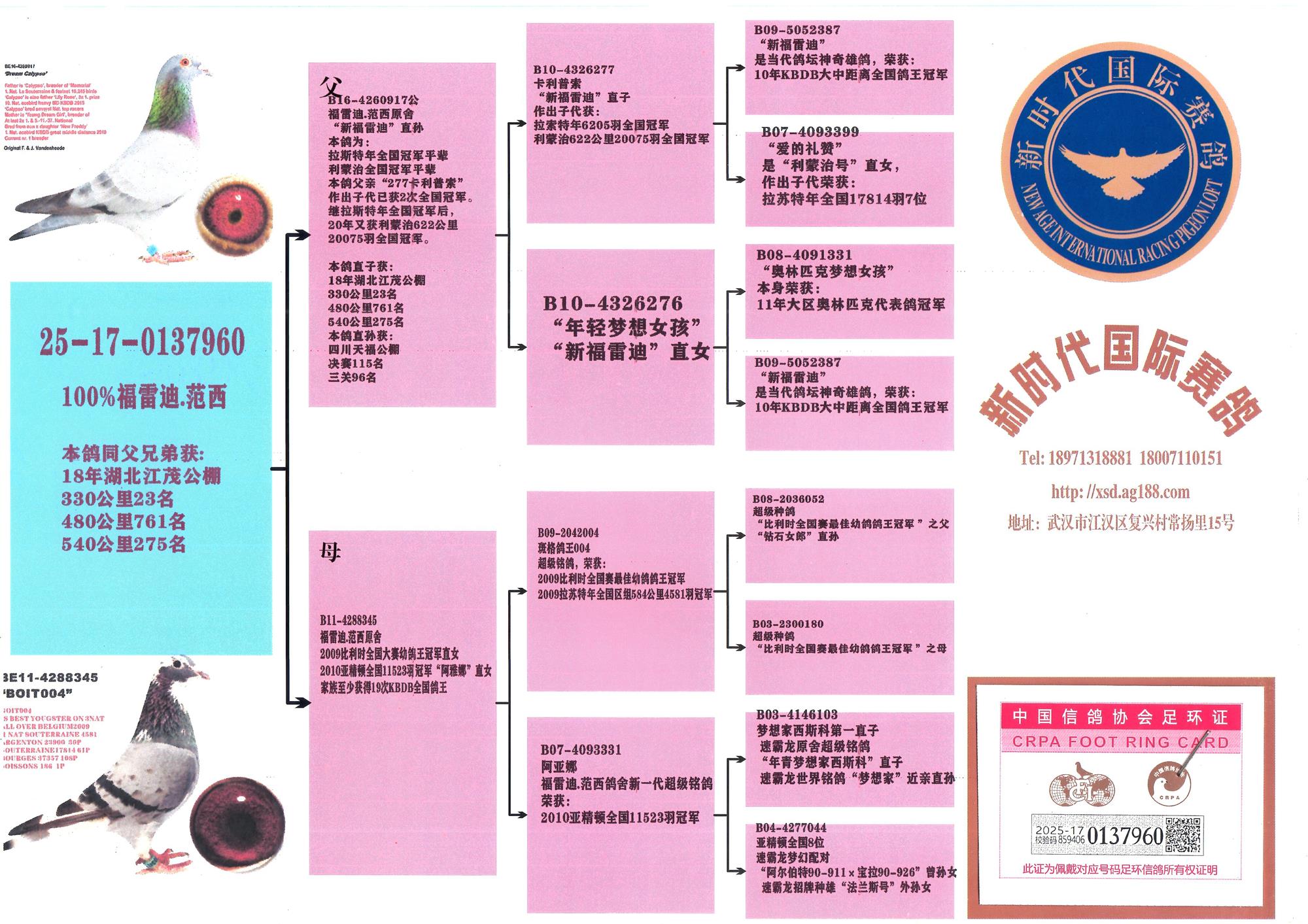 “新福雷迪”血系鸽在全国的佳绩: