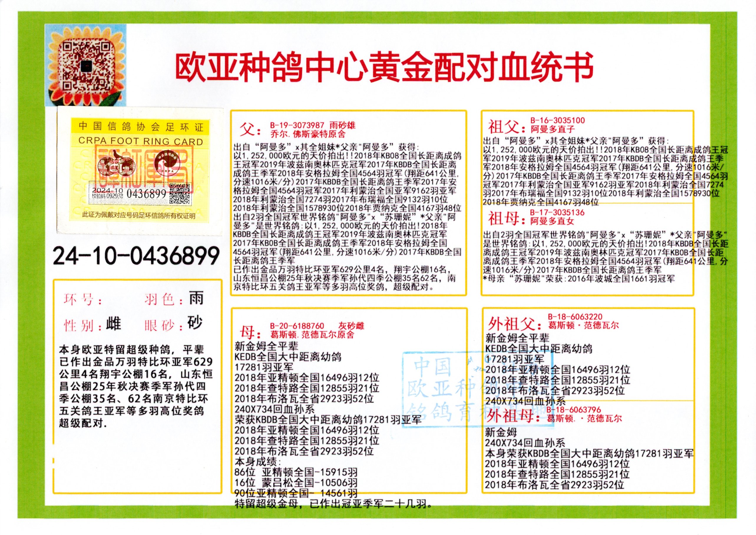 24年秋南京特比环欧亚荣获大团体冠军.小团体冠军551公里大特比13名.14名.16名.19名.20名.21名.24名.26名.27名.28名.42名.52名.54名.57名.65名.66名.68名.70名.71名.72名.74名.76名.80名.82名.83名.84名.85名.86名.90名.92名.110名.116名.121名.122名.128名.131名.158名.161名.164名.165名.166名.172名.174名.177名.182名.195名.196名.201名.205名.208名.210名.216名.253名.269名.275名.276名.294名.296名.299名,,24年秋云南天南铜都公棚决赛415名.天南铜都小棚决赛409名.云南玉活公棚决赛102名.490名.团体32名上笼二羽进二羽,天南铜都大棚506公里决赛445名。热烈祝贺河北省巨鹿县李兰生老师用欧亚泰山号血系连续十一年夺冠军,河北省国家赛冠军.全国季军等多次前十名高位,扬州王军王总用欧亚利奥24年春季获山东翔宇公棚决赛33名盖比53名。南京刘正龙刘总用欧亚盖比获得24年秋山东潍坊国际公棚决赛42名.精英赛30名.三关鸽王71名.决赛86名.加站赛16名.南京市特比环A组鸽王9名.B组鸽王5名.6名.C组鸽王5名.精英赛冠军4名.技能赛A组冠军4名.5名.秦淮区特比环荣获15名.46名.48名.87名。四川西昌徐亮徐总用欧亚利奥获得凉山州聚友决赛177名.第二关亚军双关鸽王19名.三关鸽王105名.云南豪庭公棚决赛603名。热烈祝贺24年四川重庆翔园鸽舍用欧亚泰山号荣获春季400公里冠军.秋季500公里冠军,河北王总用詹森X利奥获得千羽千翔公棚400公里冠军,广东蔡楷焕荣获24年秋爱好者 赛鸽俱乐部三关鸽王季军.一关420公里99名.二关450公里11名.三关520公里32名.单关季军.7名.12名,江西李卫兴荣获贵州红枫公棚8名.共翔俱乐部寄养棚四关综合鸽王30名.一关400公里78名.二关500公里55名.三关520公里37名.四关500公里57名.同父母获公棚18名.雷鸣获得武汉黄浦育翔中心冠军,四川陈文获得四川明鸿俱乐部300公里梦幻2名.3名.4名.9名.10名.13名.14名.15名.31名.34名.40名.41名.42名.43名.69名.71名.72名.73名.74名.94名.95名.97名.98名.99名.419公里决赛荣获总冠军7名.总共归巢9羽,四川徐亮获豪庭决赛603名,山西郑勇获得山西泰鑫公棚决赛255名詹森红狐,热烈祝贺马总获得开尔(飞跃队)决赛9名获奖金1310000万元.第一关52名,天津津福资赛180公里96名.获奖金429543万元,欧亚支持全国鸽友24年秋多人报喜 祝大家取得更好成绩,给欧亚报喜鸽友欧亚决定给每人赠送一羽超级种鸽。欧亚俱乐部特比环多关鸽王成绩:15年秋淮安特比环黑色星期一全会上笼9700多羽,当天无鸽归巢,第二天全会归巢357羽,本舍归巢158羽.前十名八羽.前一百名归巢57羽,16年春季获五关鸽王总冠军,总亚军四名.六名.七名.九名.十名.晶艺俱乐部520公里冠亚季军5名.6名.7名.9名.11名等,火车头冠军.季军6名.8名.9名.10名,16年秋晶艺俱乐部特比环520公里亚军.季军4名.6名.7名.9名,15年春南京白下特比环冠军.亚军.季军6名.7名.8名.9名.10名.指定鸽A B组获得冠军.亚军.季军4名.5名.,17年淮安特比环亚军.4名.5名.7名.8名.10名.六关鸽王总冠军.4名.6名.9名.10名,寄养棚宿迁刘总20羽特比环获冠军.季军.4名.7名.8名.9名等。18年荣获万羽特比环六关鸽王总冠军.总亚军.总季军.6名.8名.十名.单关四羽冠军.二羽亚军.四羽季军.前十名27羽。19年秋万羽特比环六关鸽王总亚军.总季军.5名.8名等,单关二羽冠军.三羽亚军.一羽季军前十名31羽。20年秋淮安市鸽会四关特比环大赛风雨无阻鸽王亚军.鸽王六名,金品俱乐部万羽特比环六关鸽王总冠军,总亚军.四名.五名.六名.七名.八名.十名.前二百名鸽王35羽,单关冠亚季军前十名四十多羽,火车头五关鸽王季军.六名.八名.前二百名鸽王十七羽。20年春荣获淮安五区一市四关鸽王总冠军.亚军.四名.八名.九名。21年秋荣获金品万羽特比环大赛六关鸽王总亚军.总季军.四名.七名.九名.十名.单关冠亚军季军前十名三十多羽。火车头协会鸽王六名.七名.十名.单关前十名十七羽。22年秋荣获鸽王总冠军.总亚军.5名.7名.8名.9名.11名.单关冠亚季军前十名三十多羽,第一关单关前二百名四十多羽,第二关前二百名三十多羽,第三关前二百名四十多羽,第四关前二百名四十多羽,第五关前一百名53羽。23年秋荣获鸽王季军.五名.八名.十名.13名.17名.20名.27名等多羽鸽王.单关前十名二十多羽。公棚.寄养棚部分成绩:16年秋宁夏黄河公棚总冠军电脑戈马力指定通炮冠军,17年送八羽参赛获得鸽王八名进奖四名,支持韩总荣获八名。支持鸽友荣获宁夏中卫公棚决赛总冠军.精英赛冠军,支持18年宁夏黄河公棚决赛冠军詹森X泰山。安徽鼎博寄养棚院内外四关鸽王总冠军.鸽王十七名.三十七名同窝,鸽王39名.42名.58名.67名。18年山东公棚预赛冠军.决赛65名.送八羽进奖五羽.指定获奔驰汽车一辆。支持鸽友获得云南蓝云公棚冠军.盖比X佛卡门。支持鸽友荣获云南银集公棚决赛冠军 詹森427X520血系 速度赛6700羽冠军。17年荣获金马俱乐部寄养棚四关鸽王总冠军.季军.六名.八名.第一关冠军.亚军.季军四名.七名.十一名.金牌教练奖。支持鸽友18年北京费翔公棚预赛九名电脑X桑杰士,支持鸽友荣获陕西威力公棚决赛11名.内蒙古临河寄养棚四关鸽王六名.詹森配泰山,支持河北王总用欧亚詹森427配胡本喜获20年秋开尔青年棚季军。云南东荣公棚16年预赛冠军.决赛77名.17年决赛12名.詹森红狐X泰山,17年平安公棚决赛4名 詹森427。欧亚获得21年金母寄养棚第一关四名.第二关5名.第三关5名.6名.7名.10名.三关鸽王总冠军,四关鸽王14名.十羽鸽王。支持河