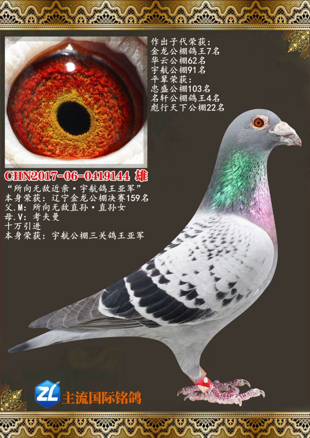 - 当前查看拍卖鸽:宇航鸽王亚军直子.金龙公棚159名