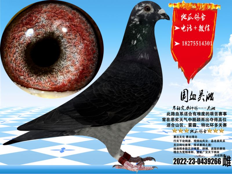 - 当前查看拍卖鸽:国血吴淞老桃花雌,完美体型,眼沙实际更漂