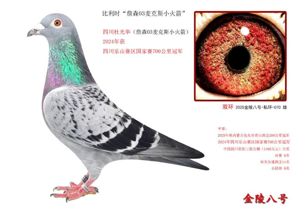 金陵八号2025年12月获山东潍坊国际公棚500公里决赛11名(拿破仑)