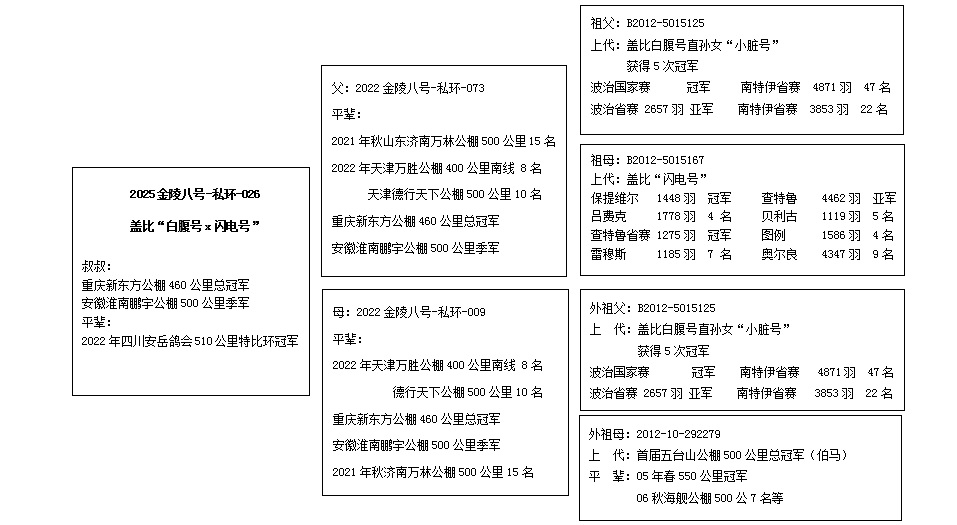 金陵八号2025年12月获山东潍坊国际公棚500公里决赛11名(拿破仑)