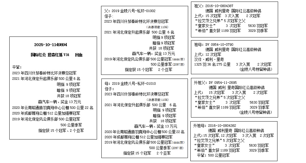 - 血统:德国 威利里奇“国际红公 詹森红狐731”